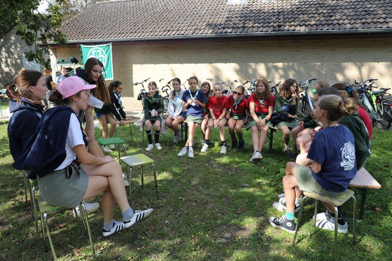 De leiding had een waaier aan activiteiten voorzien. Ze dompelden de meisjesscouts onder in een wereld vol ‘scoute’ spelletjes en lieten iedereen een kijkje nemen in hoe een echte scoutszondag er uitziet.