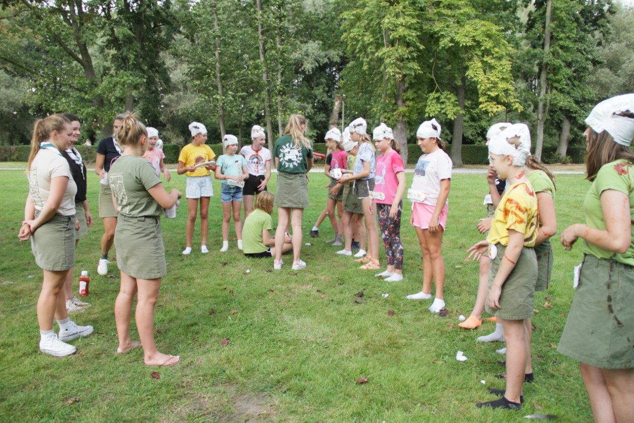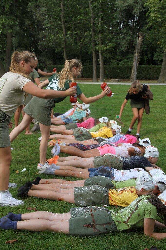 Bij de meisjes was het overgangsweekend. De leden ondergingen hun doop bij hun nieuwe groep. De eitjes, bloem en ketchup zorgden voor de nodige hilariteit.