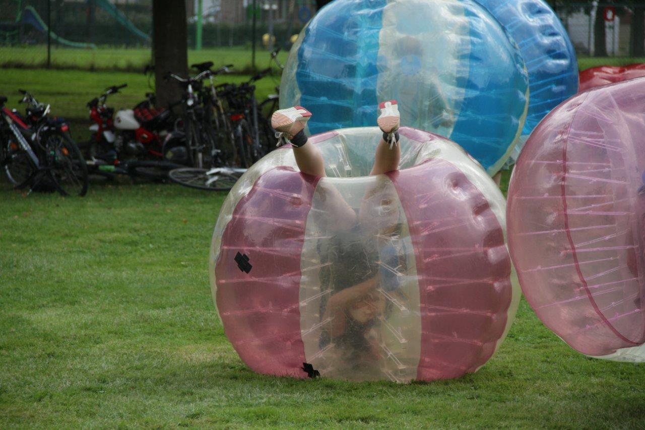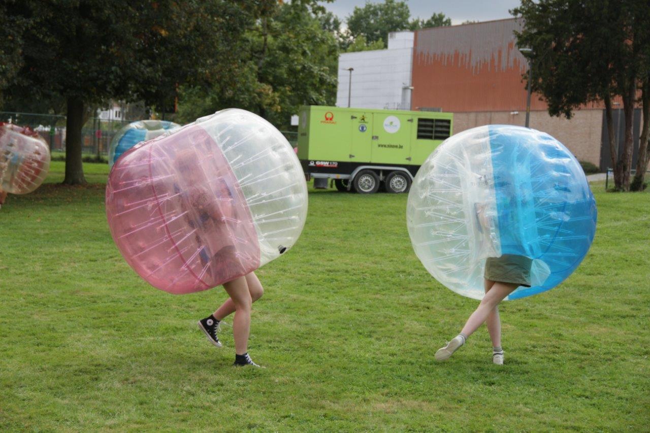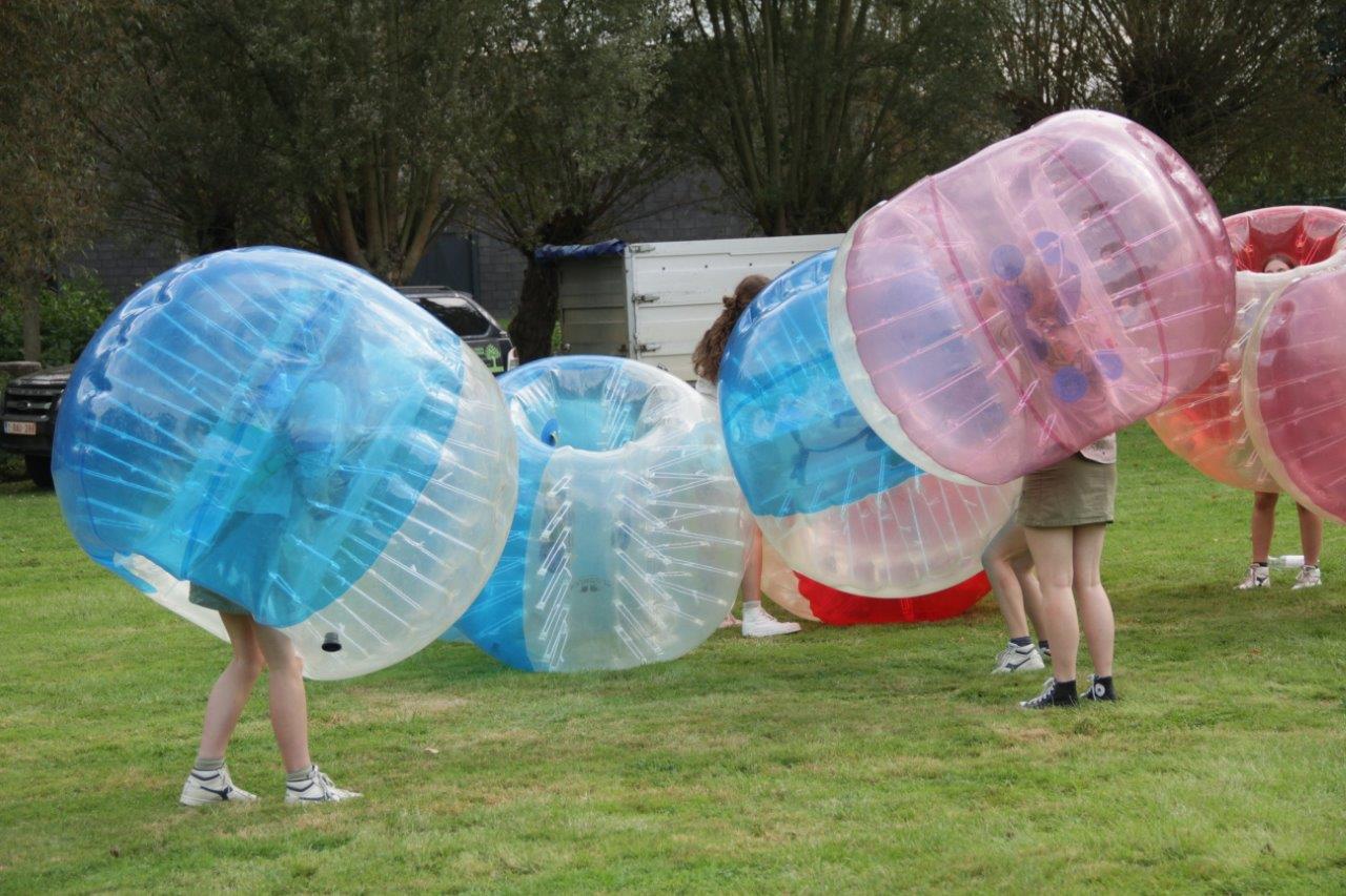 Daarnaast konden ze zich natuurlijk ook uitleven in verschillende spelletjes. Met de opgeblazen ballen was het bijvoorbeeld heerlijk tegen elkaar opbotsen. Blootvoets lopen op de grindpaden was dan weer iets minder aangenaam, maar wel plezant. Het groepsgevoel kwam er alleen maar sterker uit.