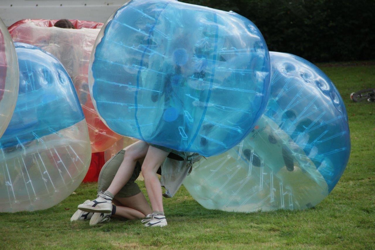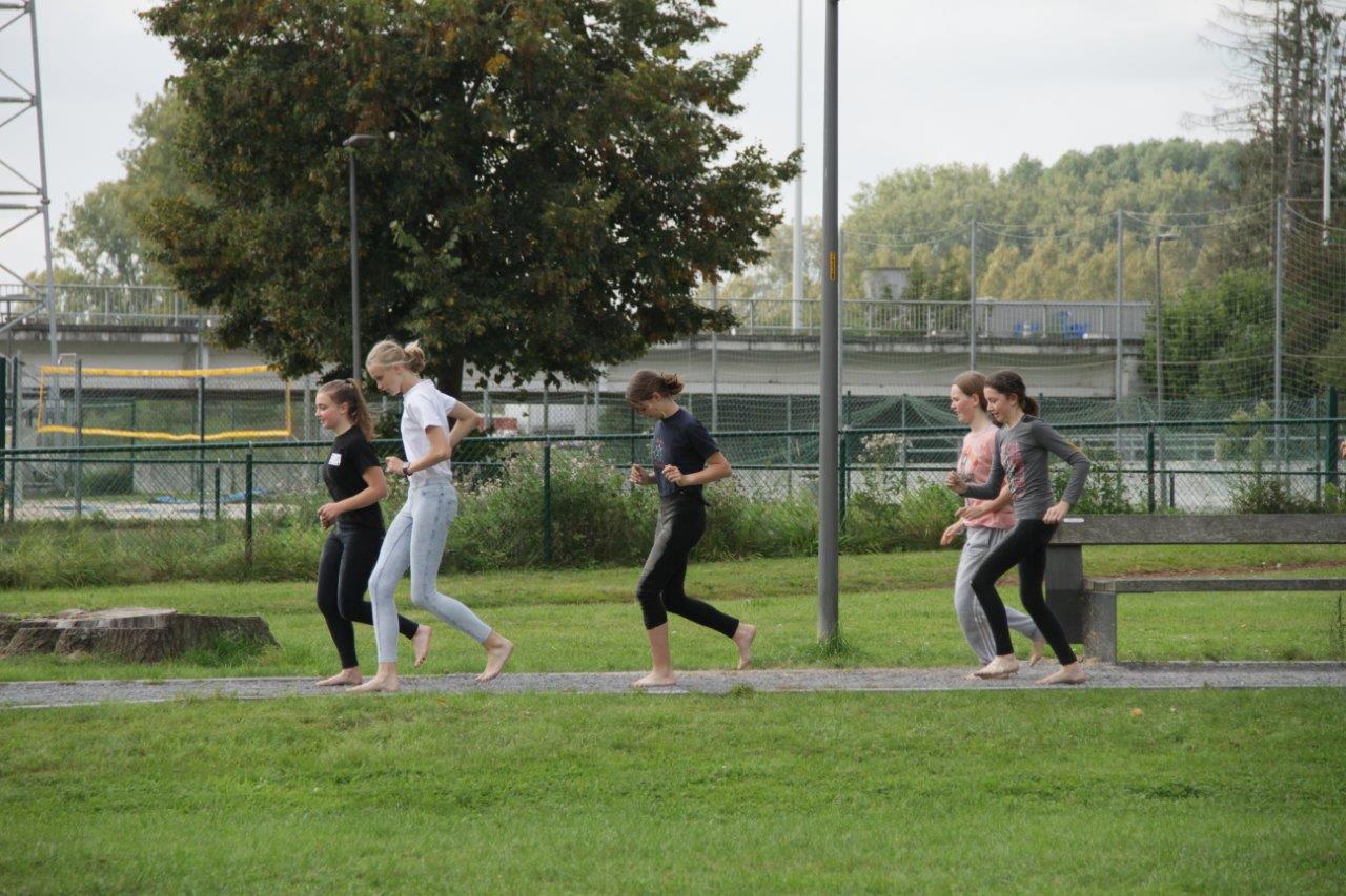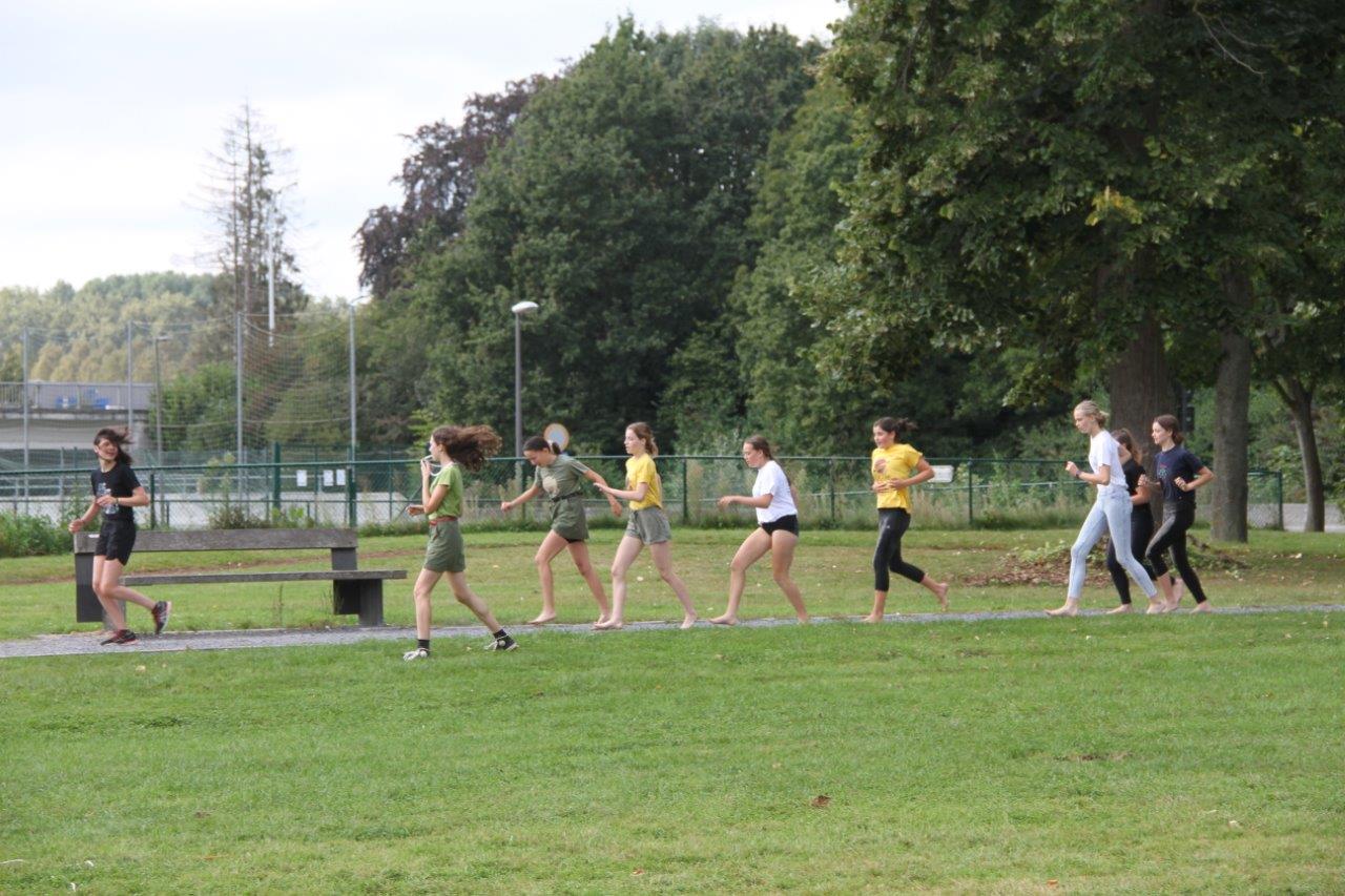 Daarnaast konden ze zich natuurlijk ook uitleven in verschillende spelletjes. Met de opgeblazen ballen was het bijvoorbeeld heerlijk tegen elkaar opbotsen. Blootvoets lopen op de grindpaden was dan weer iets minder aangenaam, maar wel plezant. Het groepsgevoel kwam er alleen maar sterker uit.