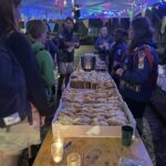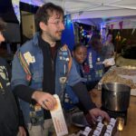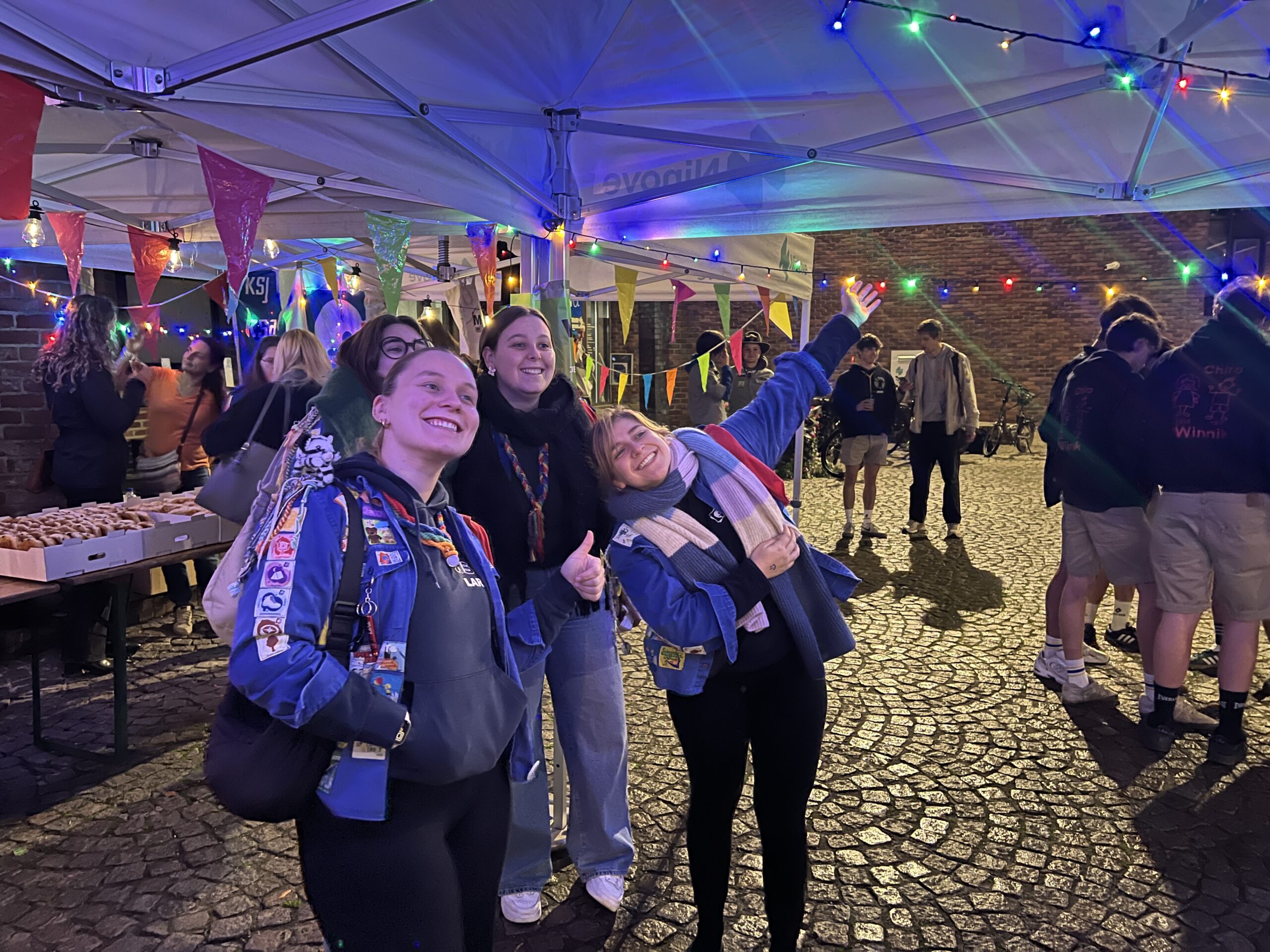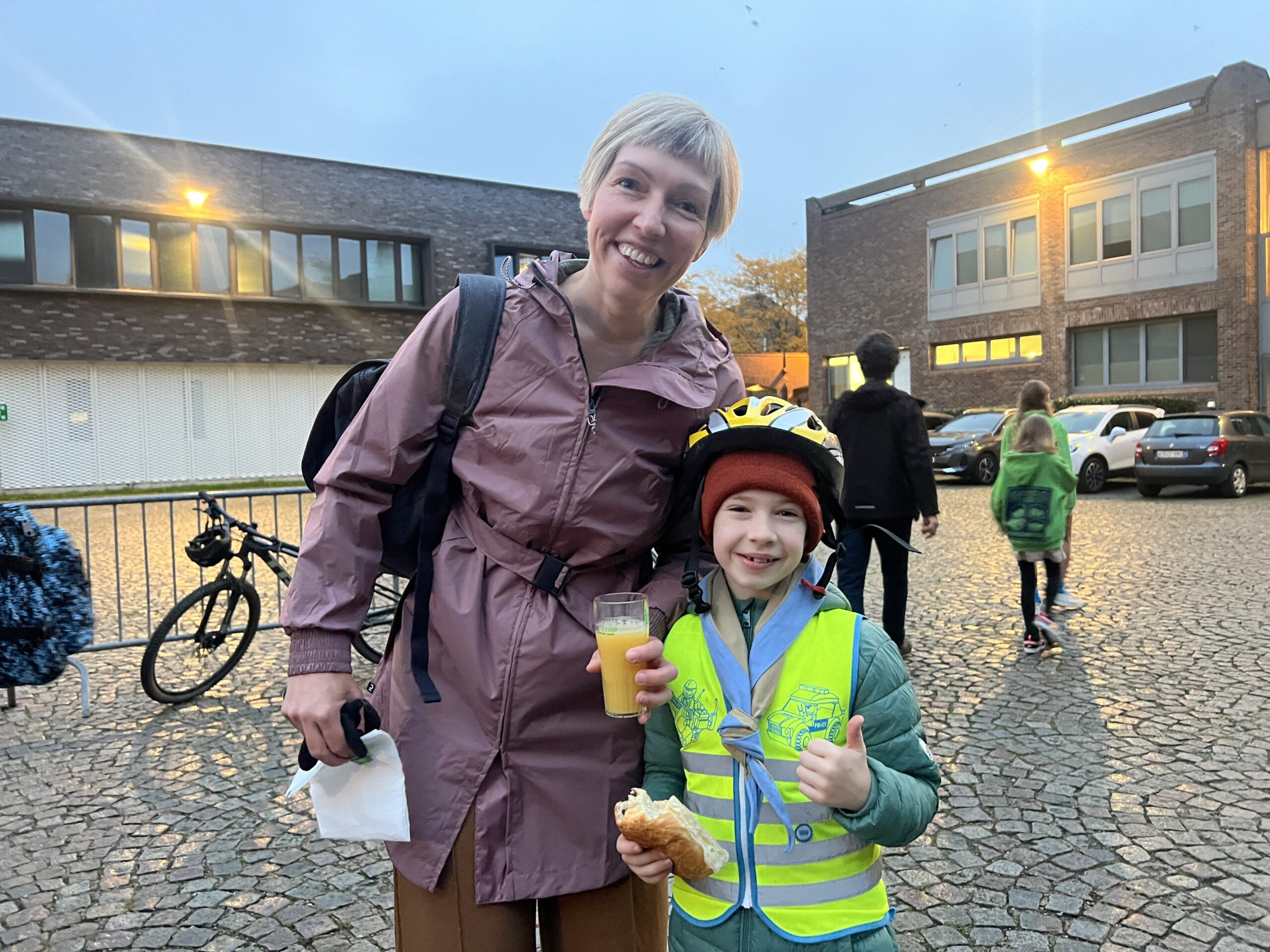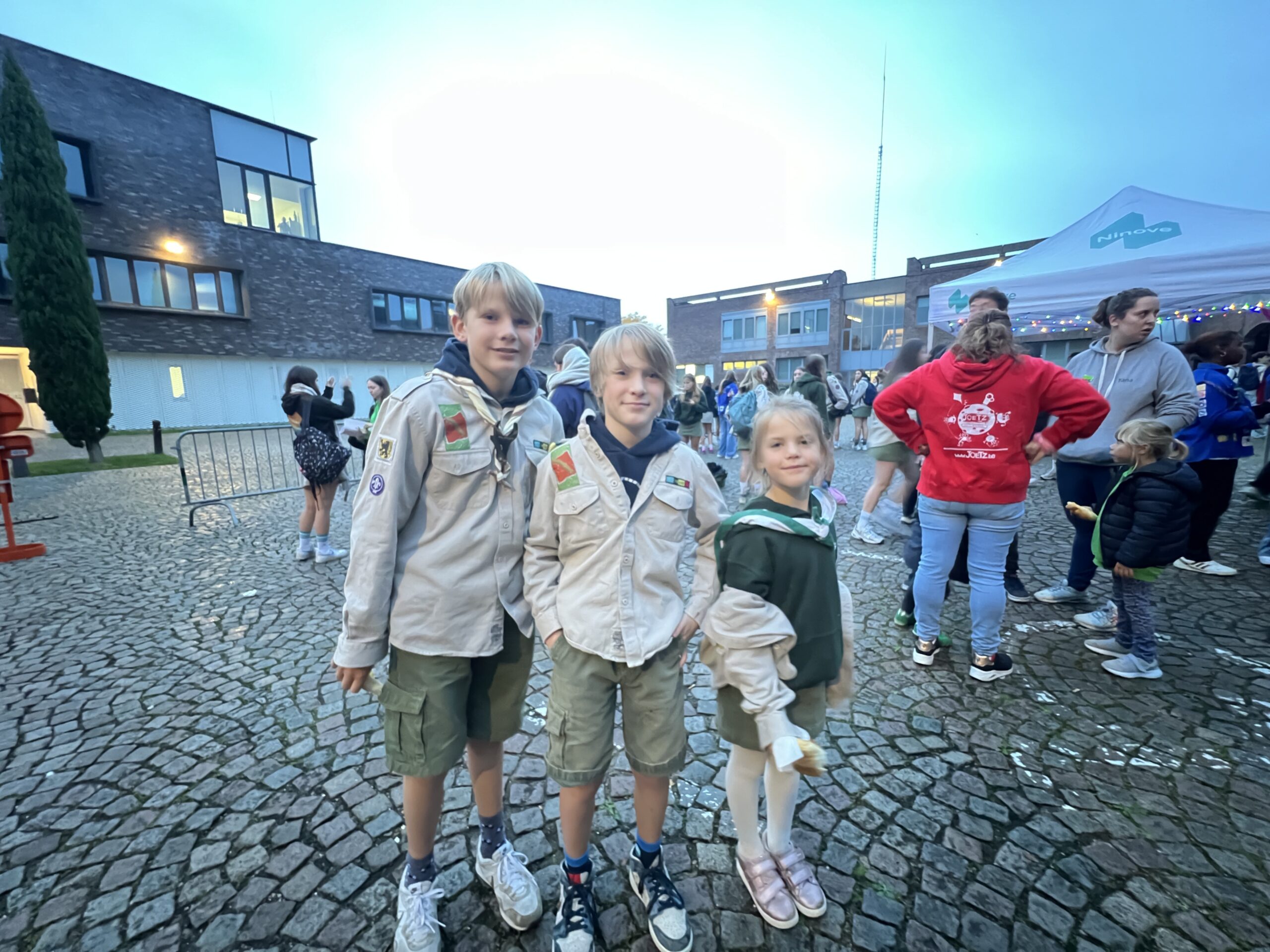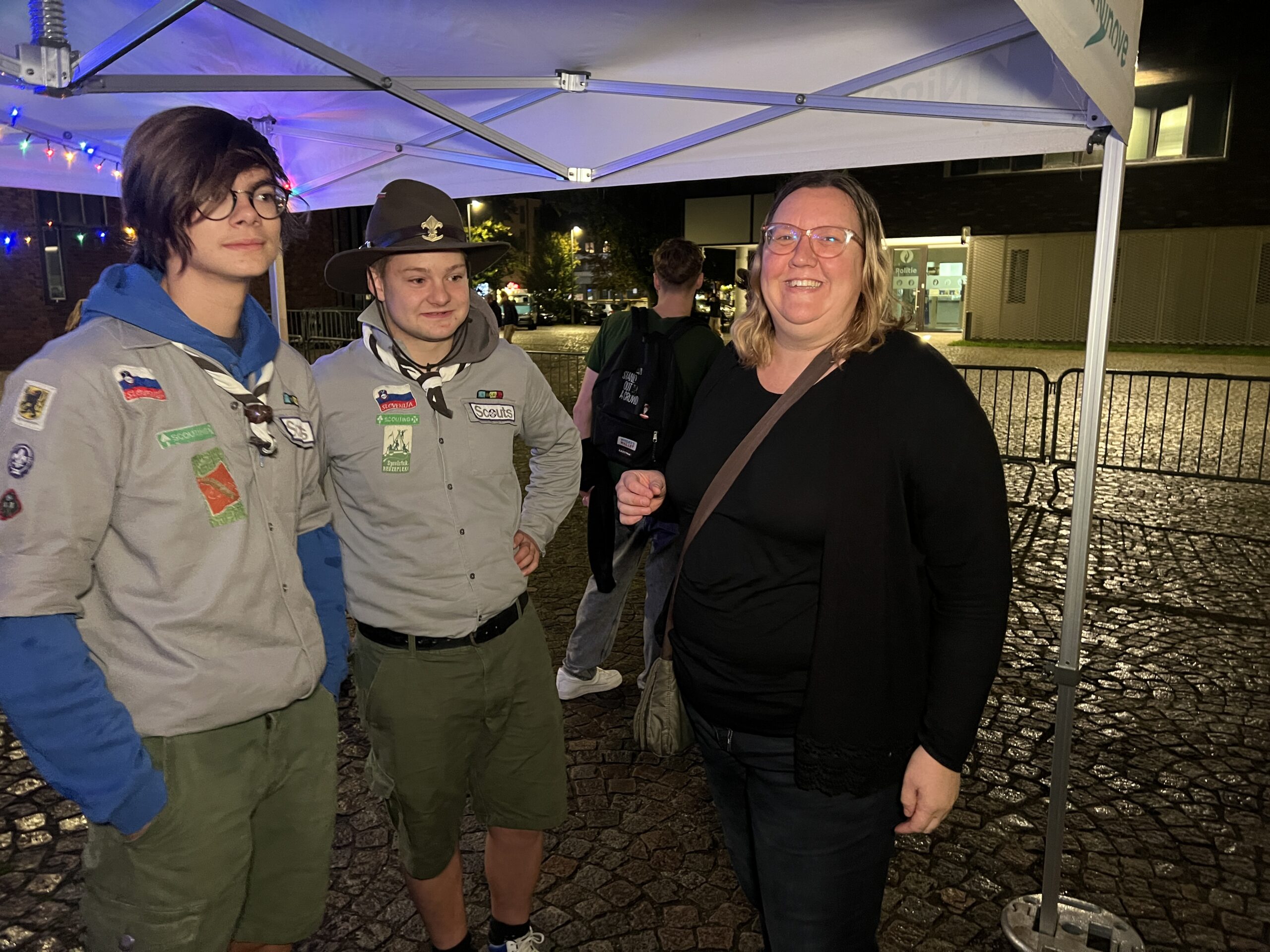 Ze konden hier gratis genieten van koffiekoeken en warme chocomelk onder twee voorwaarden: ze moesten hun jeugdbewegingsuniform dragen én een eigen beker meebrengen. Al keken de organisatoren hierop niet heel strikt toe, want burgemeester Tania De Jonge, een aantal ouders en onze reporter kregen ook wat warm lekkers toegestopt, zonder die toebehoren.