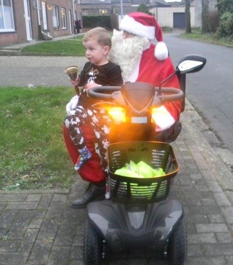 Al had Chico aanvankelijk wel een probleem. “Een Kerstman met een wandelstok is toch niet wat je kunt verwachten. De slee met rendieren was ook geen oplossing wegens geen sneeuw. De Kerstman is echter niet zo dom als hij er uit ziet en dus heb ik mijn scootmobiel van onder het stof gehaald.”
