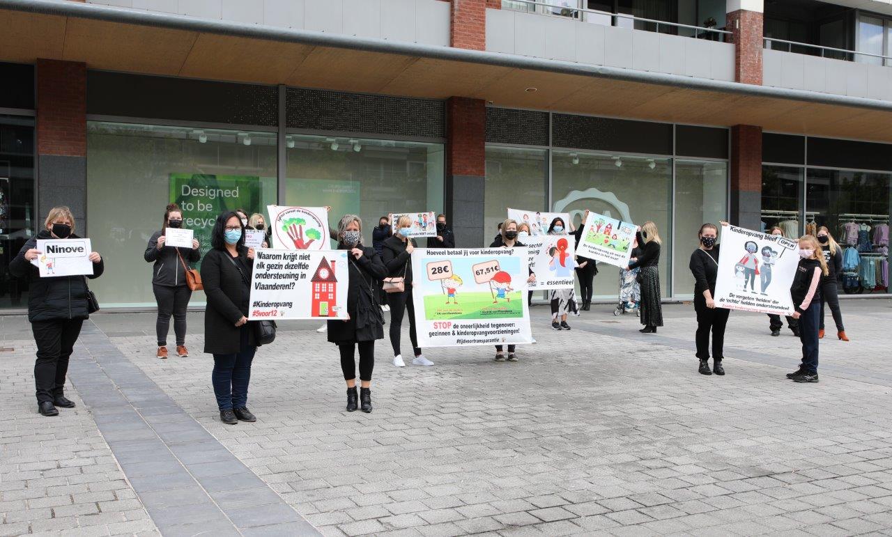 In Ninove kwamen de actievoerders rond de middag samen aan het Ninia Shopping Center. Zij zongen ‘What about us?’ (Pink): een vraag aan de overheid en Kind&Gezin om als volwaardige gesprekspartners naar hen te luisteren.