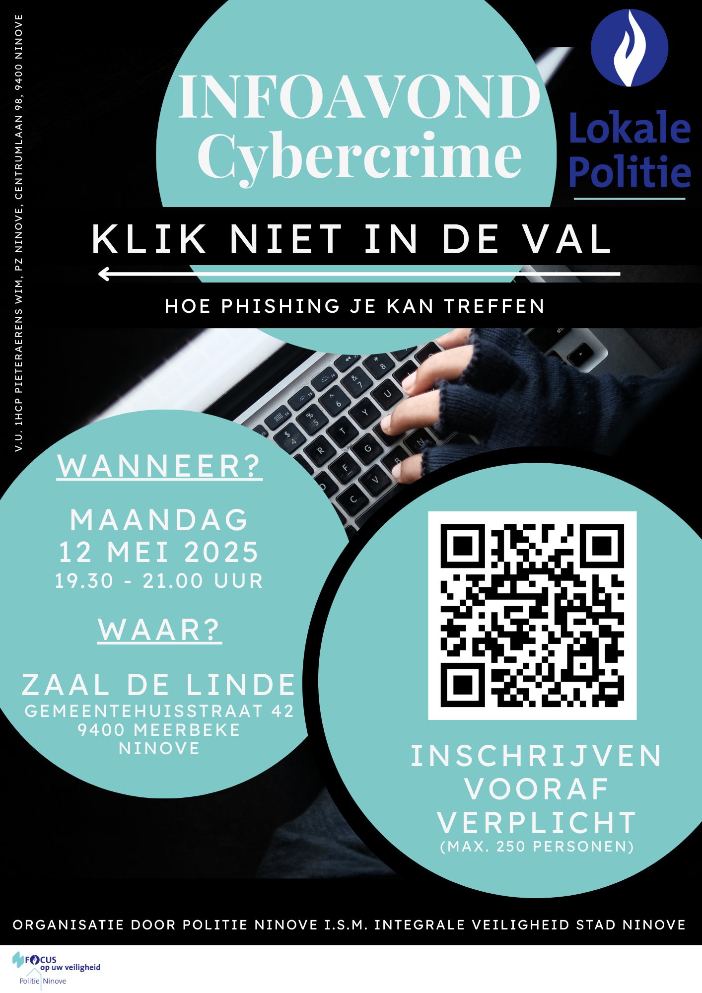 MEERBEKE – De politiezone Ninove en de dienst Integrale Veiligheid organiseren maandag 12 mei een gratis infoavond over cybercrime in De Linde.