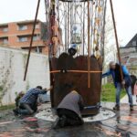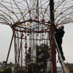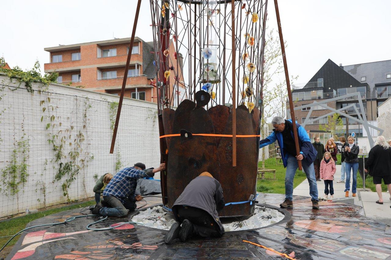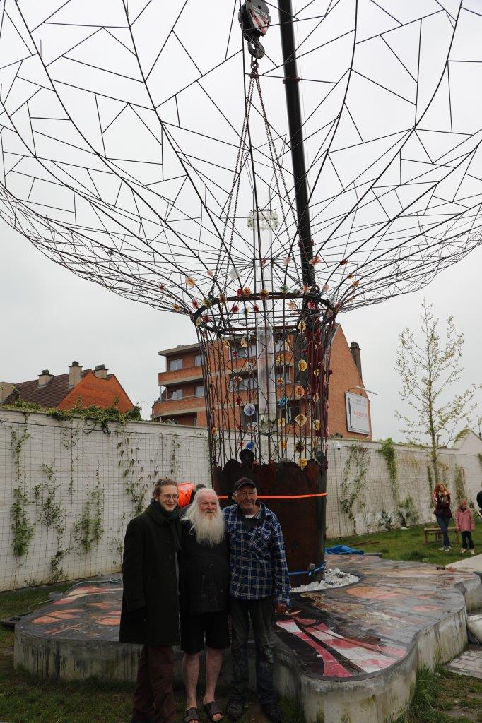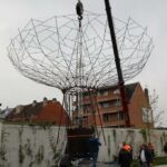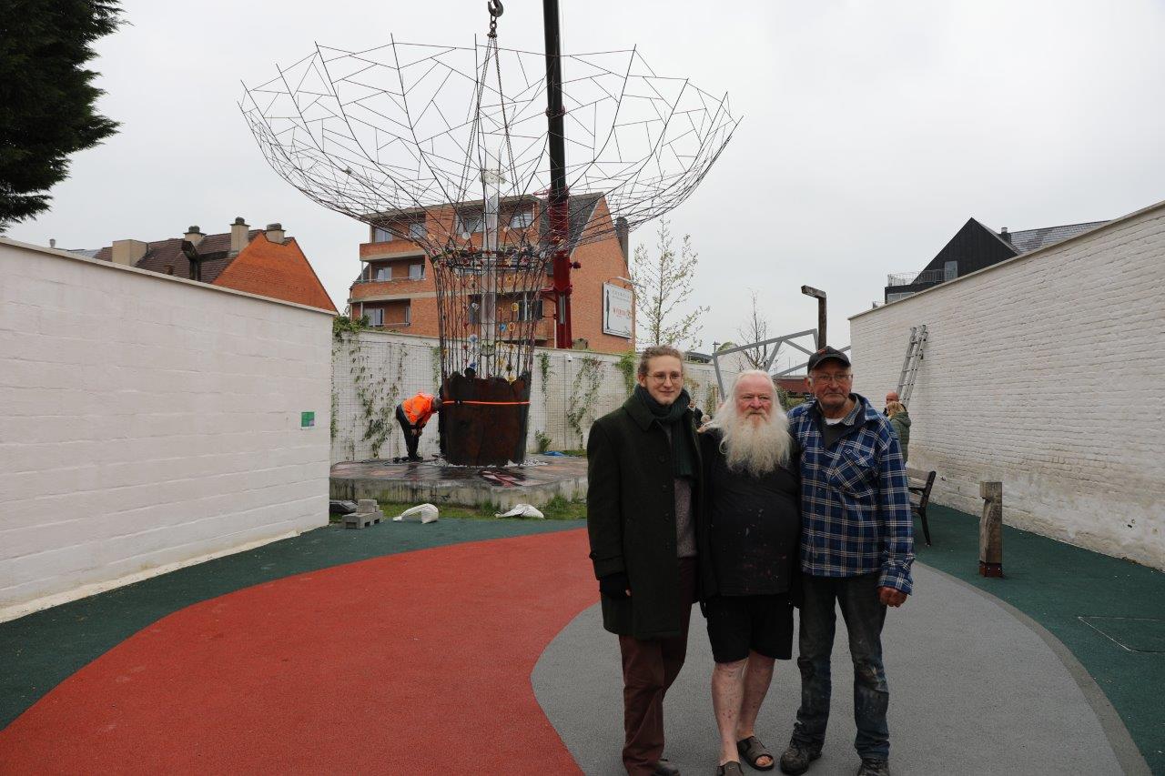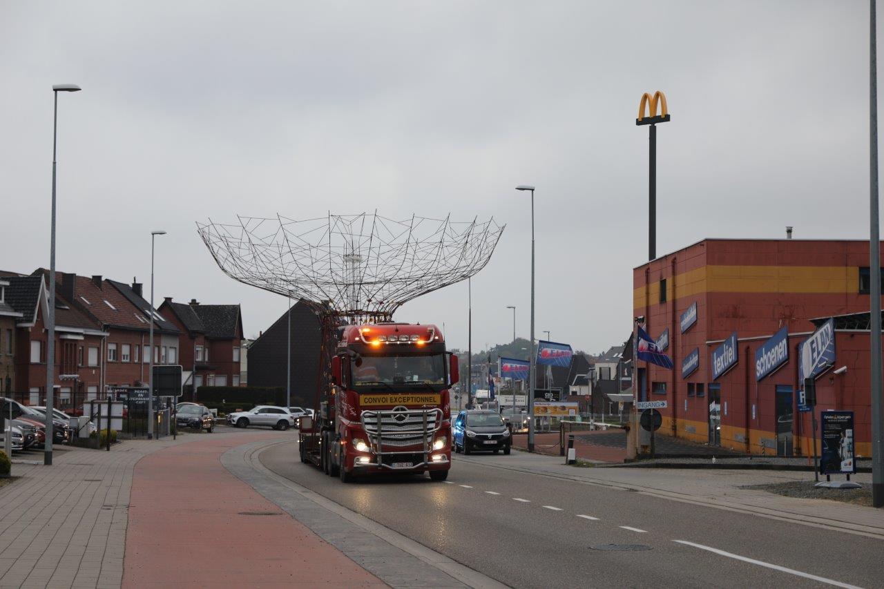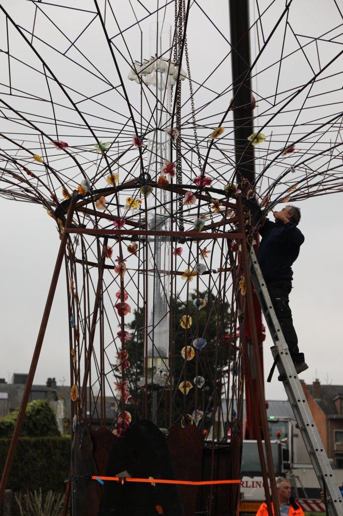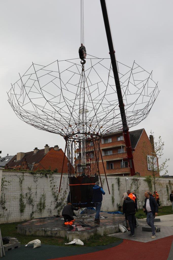 NINOVE – De kunstboom van William Arijs is zaterdagochtend 29 april van aan de Outerstraat getransporteerd naar zijn definitieve bestemming in de Beversteeg.