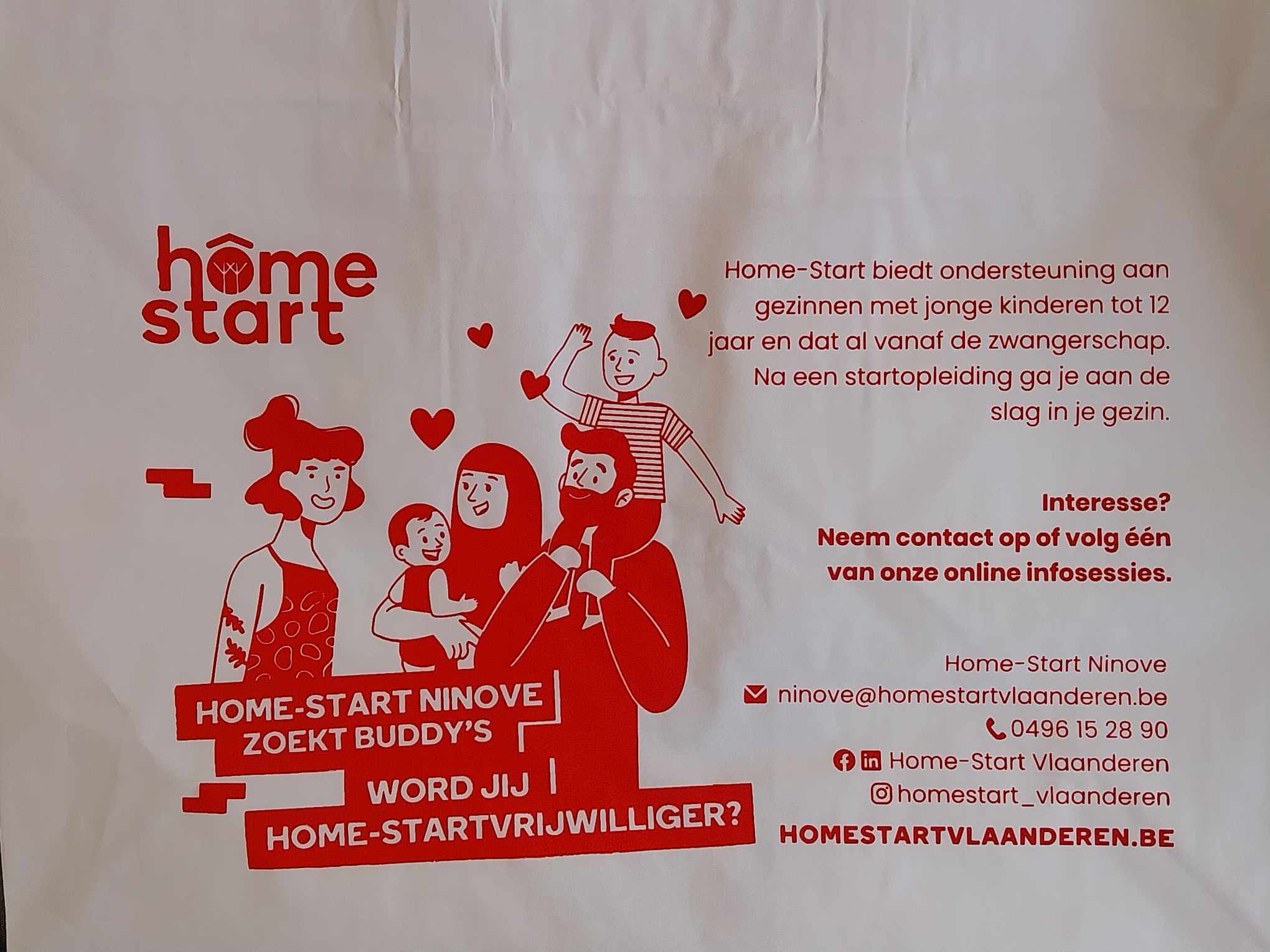Home-Start is op zoek naar nieuwe vrijwilligers, die een gezin tijdelijk wat steun kunnen bieden. Dankzij de frietzakkenactie komt de oproep van Home-Start Ninove terecht in vele Ninoofse huiskamers. Heb jij ook zin om wat van jouw vrije tijd te schenken? Volg vrijblijvend een online infosessie.