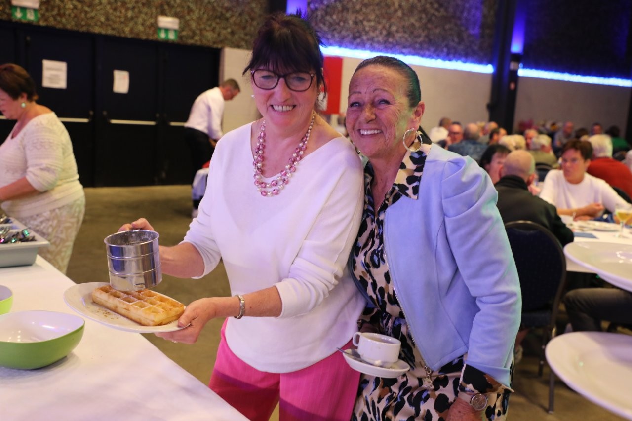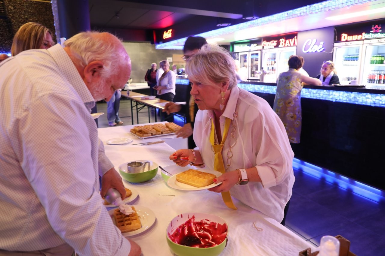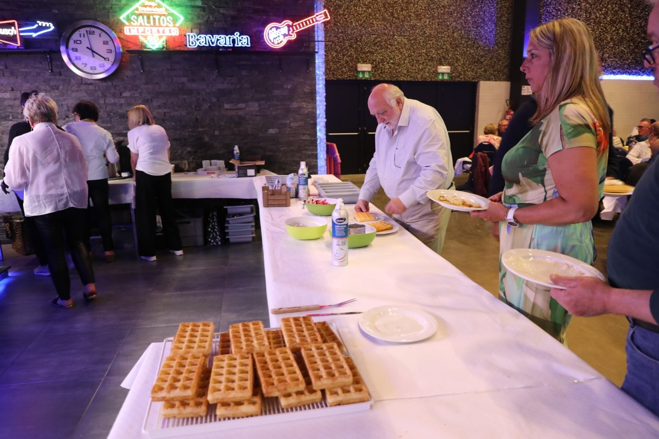 Onder leiding van Walter Praet vond de inmiddels traditionele wafelenbak plaats in evenementenhal Cloë, waar gezelligheid en waardering centraal stonden.