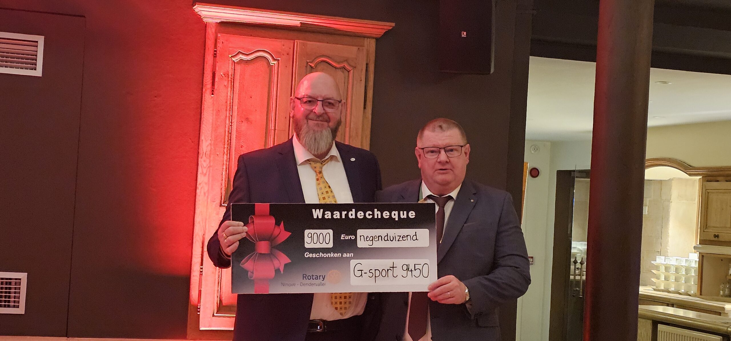 NINOVE/HAALTERT – Dirk Hemerijckx (voorzitter Rotary Ninove-Dendervallei) mocht een cheque ter waarde van € 9.000 overhandigen aan Wim Schandevijl (voorzitter G-Sport 9450).