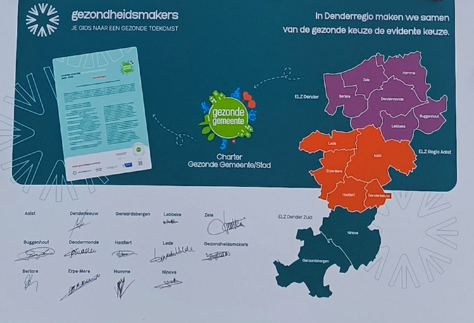 De lokale besturen van Buggenhout, Berlare, Denderleeuw, Dendermonde, Erpe-Mere, Geraardsbergen, Haaltert, Hamme, Lebbeke, Lede, Ninove en Zele sluiten met de ondertekening van dit charter aan bij een groeiend netwerk van ‘Gezonde Gemeenten’. Dit is een initiatief van Gezondheidsmakers in samenwerking met het Vlaams Instituut Gezond Leven, de Vereniging van Vlaamse Steden en Gemeenten (VVSG) en met de steun van de Vlaamse overheid.