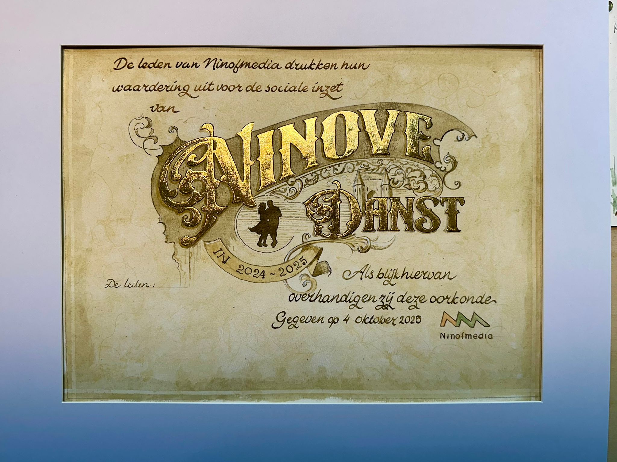 NINOVE – De medewerkers van Ninofmedia overhandigden zaterdagavond 4 oktober een oorkonde aan de ploeg van Ninove Danst, als een waardering voor de sociale inzet.