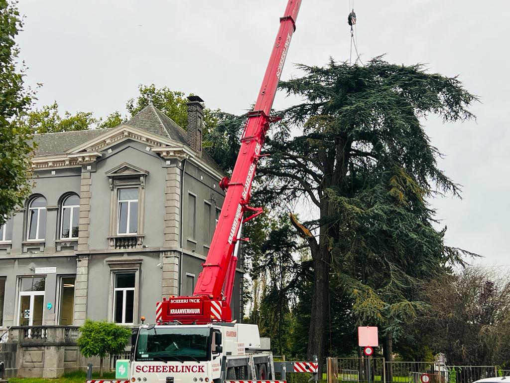 MEERBEKE – Omwille van het acute risico op afbrekende takken en grotere kroononderdelen, liet de stad donderdag 5 oktober de atlasceder in het park aan de Gemeentehuisstraat/Kwaderstraat-Zuid rooien.