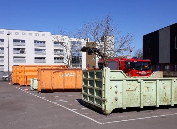 Die definitieve oplossing is er na 2 jaar nog altijd niet. Schepen Torrekens heeft als noodoplossing 7 grote afvalcontainers op de parking van het Paul De Montplein laten plaatsen.