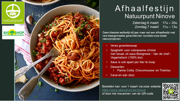 NINOVE – Dit jaar geen normaal eetfestijn, maar een afhaal-variant. De opbrengst van het Natuurpunt afhaaleetfestijn gaat naar de aankoop van natuurgebieden.