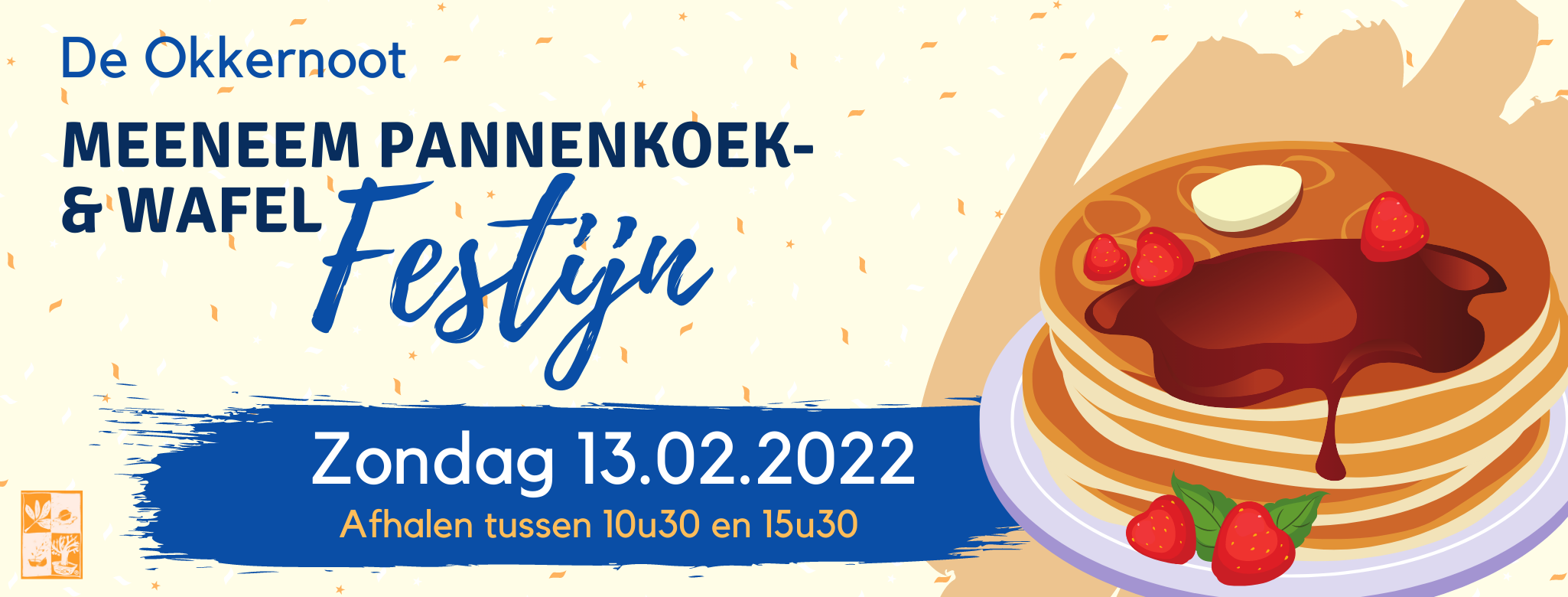 DENDERWINDEKE – De Okkernoot organiseert zondag 13 februari een meeneem pannekoeken- en wafelfestijn.