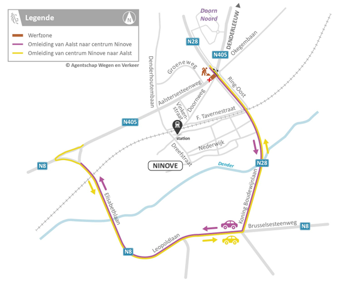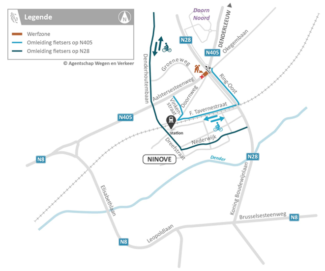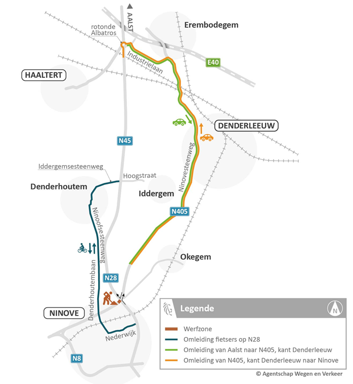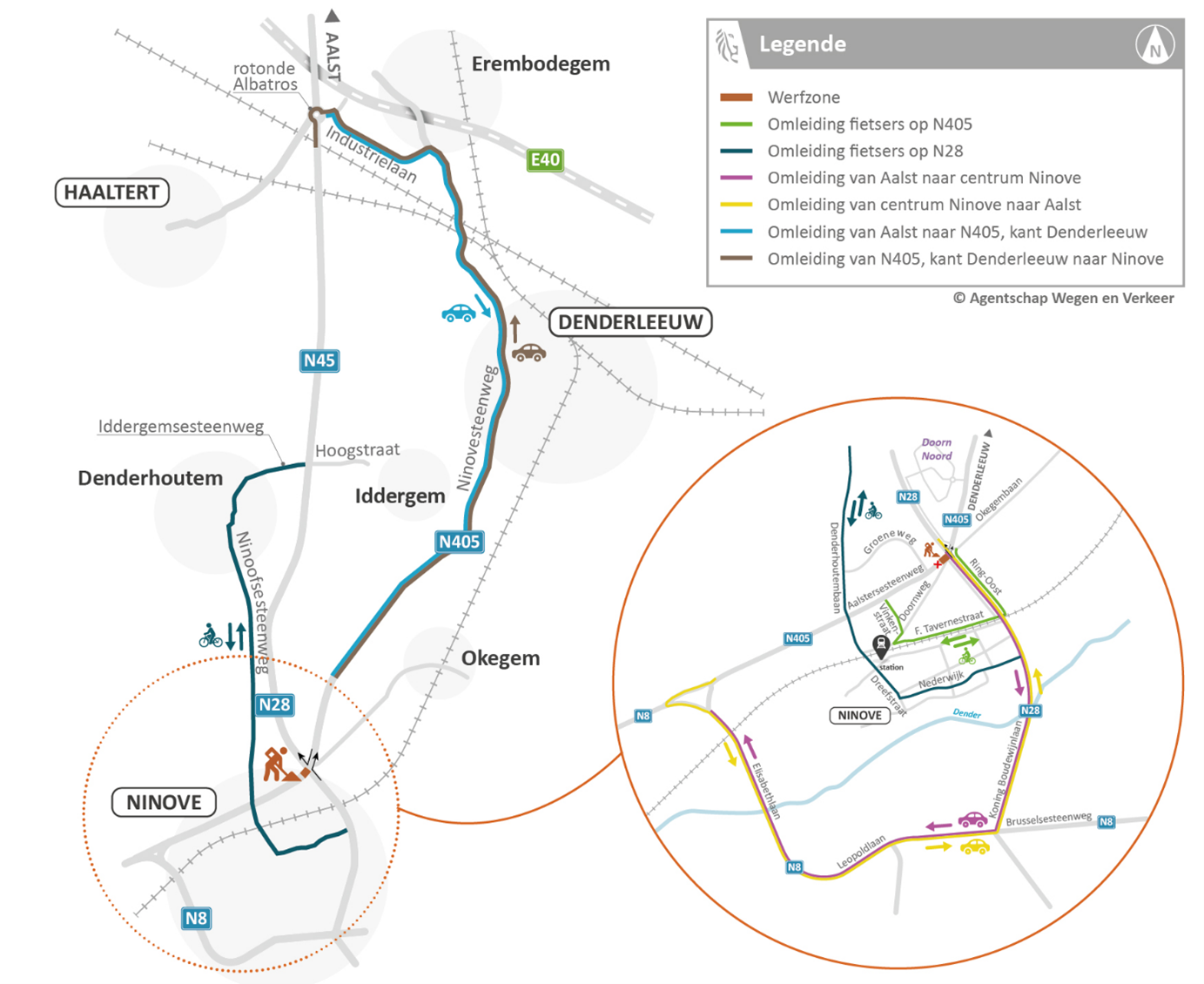 - Fietsers langs de Expresweg/Koning Boudewijnlaan /N28 volgen een omleiding via Ninove centrum en Denderhoutem.