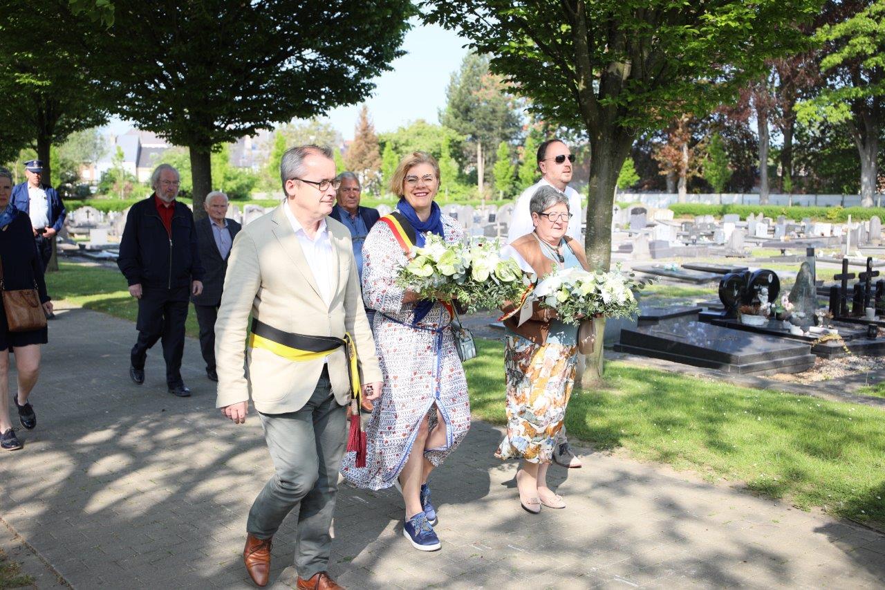 Het stadsbestuur bracht zondag om 10 uur een bloemenhulde aan het herdenkingsmonument op de stedelijke begraafplaats (Denderhoutembaan) en huldigde daar de nieuwe gedenksteen in.