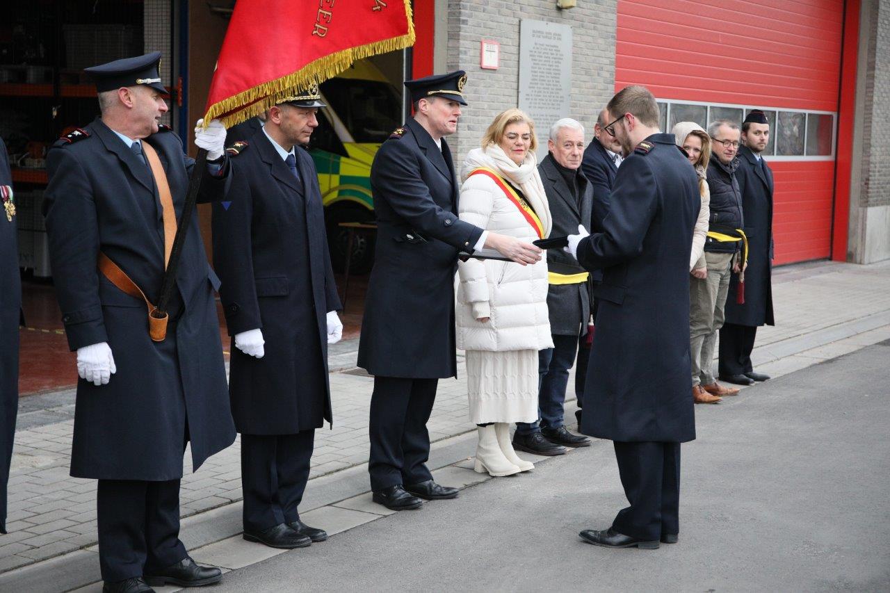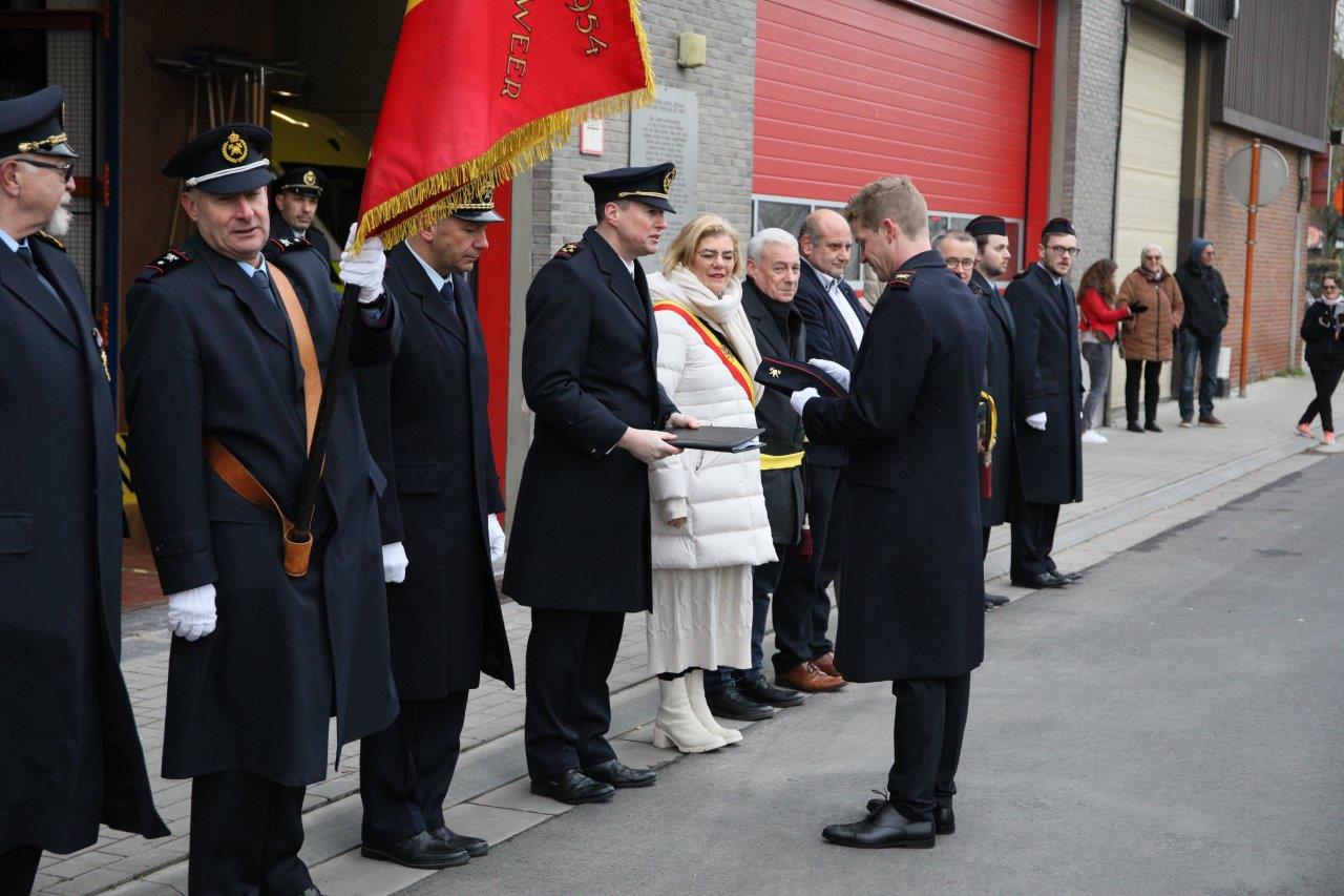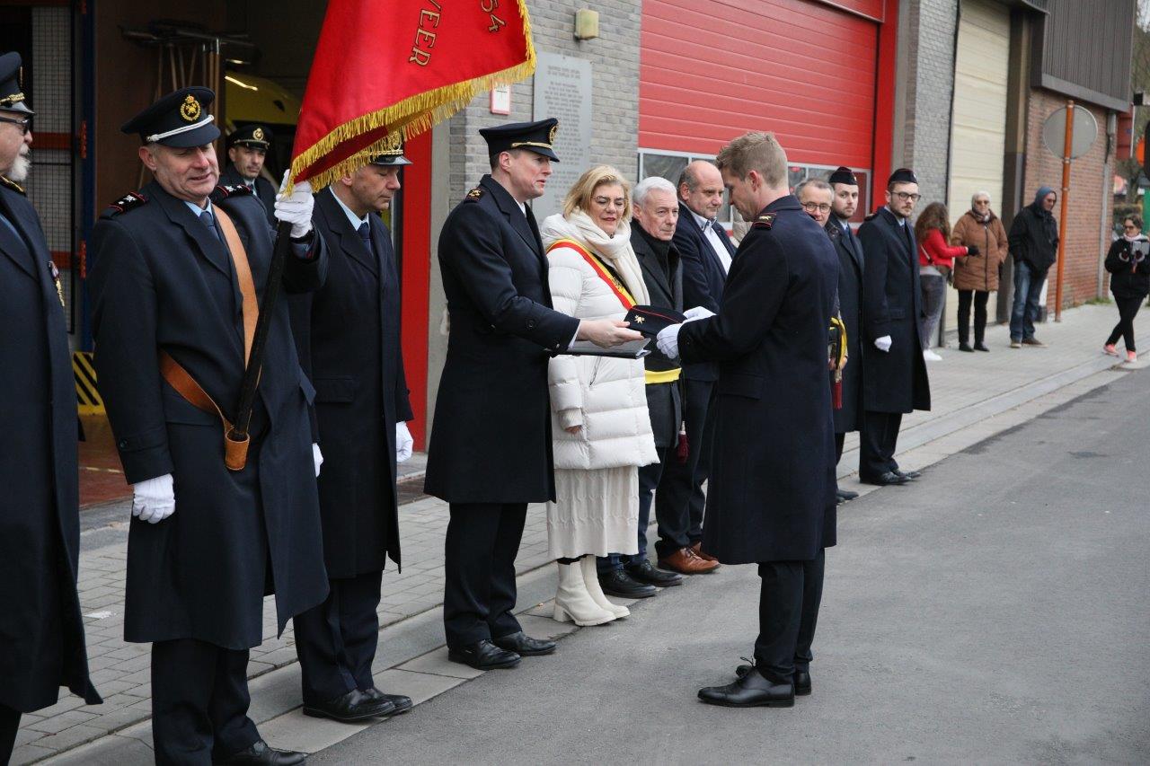 Kapitein Tom Van Esbroeck mocht twee bevorderden aanstellen: vanaf nu hebben Bart Baten en Quintelier de graad van sergeant. Kevin Spitaels en Steven Witterzeel mogen zich voortaan volwaardig brandweerman noemen.