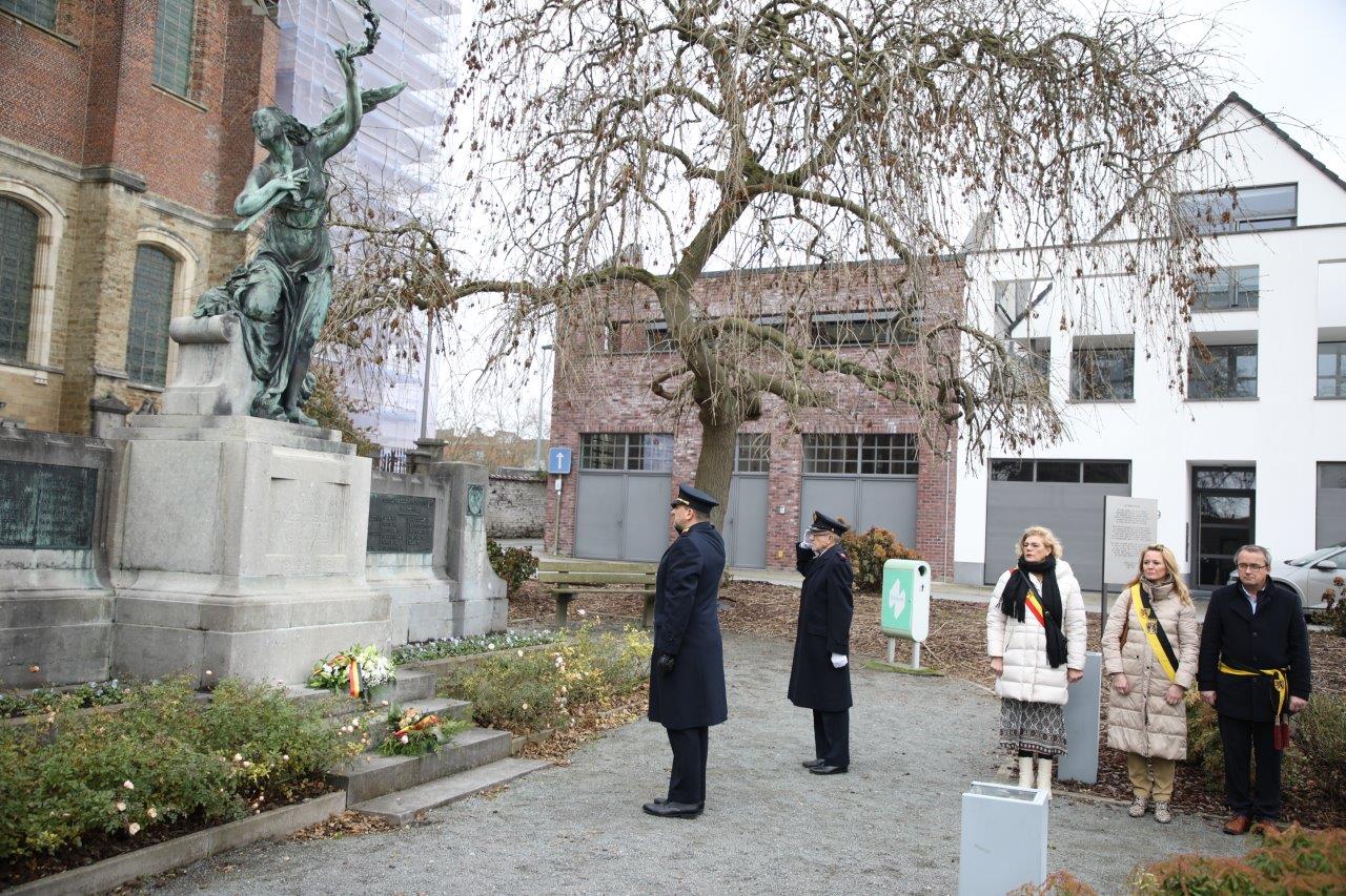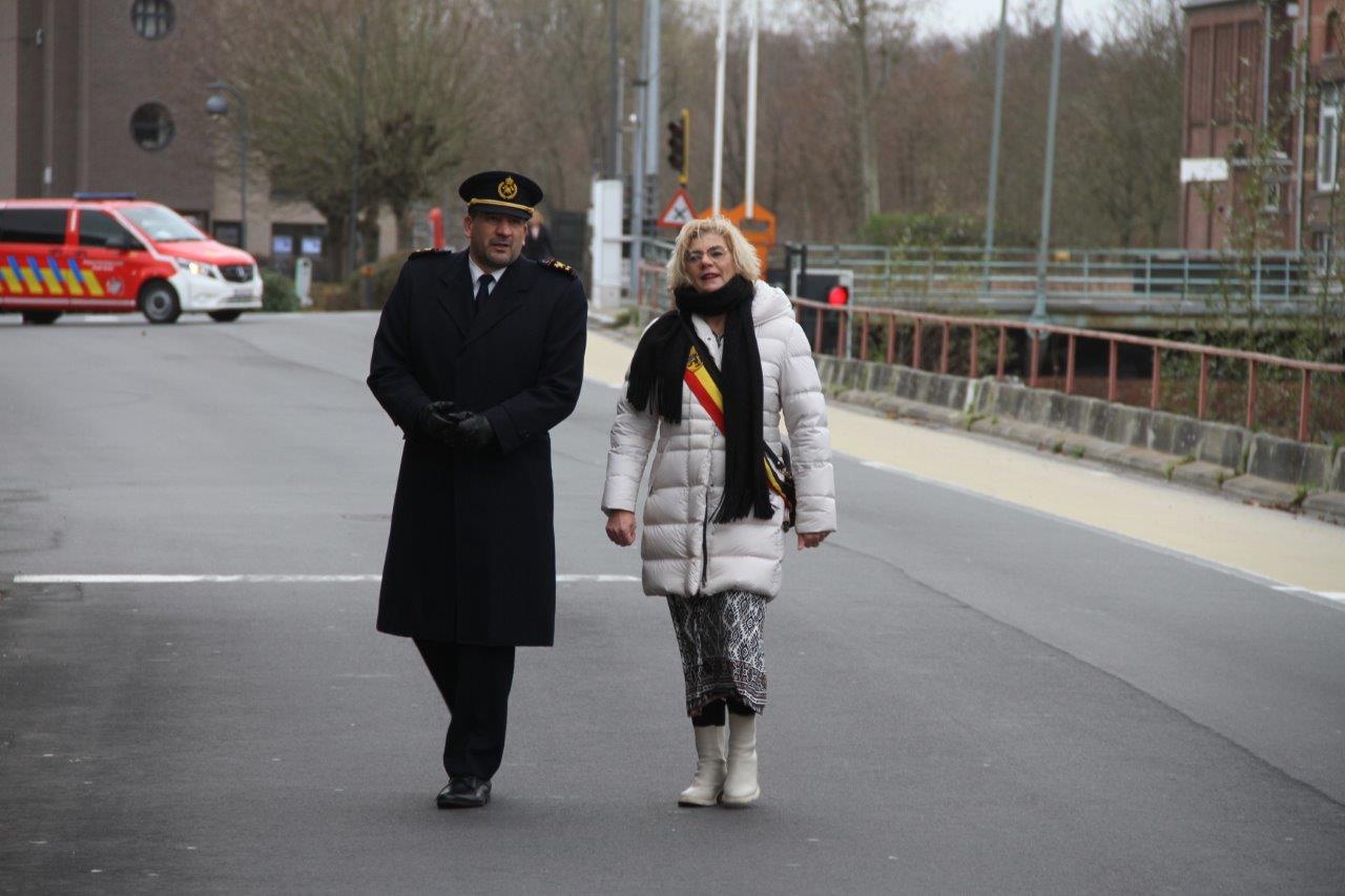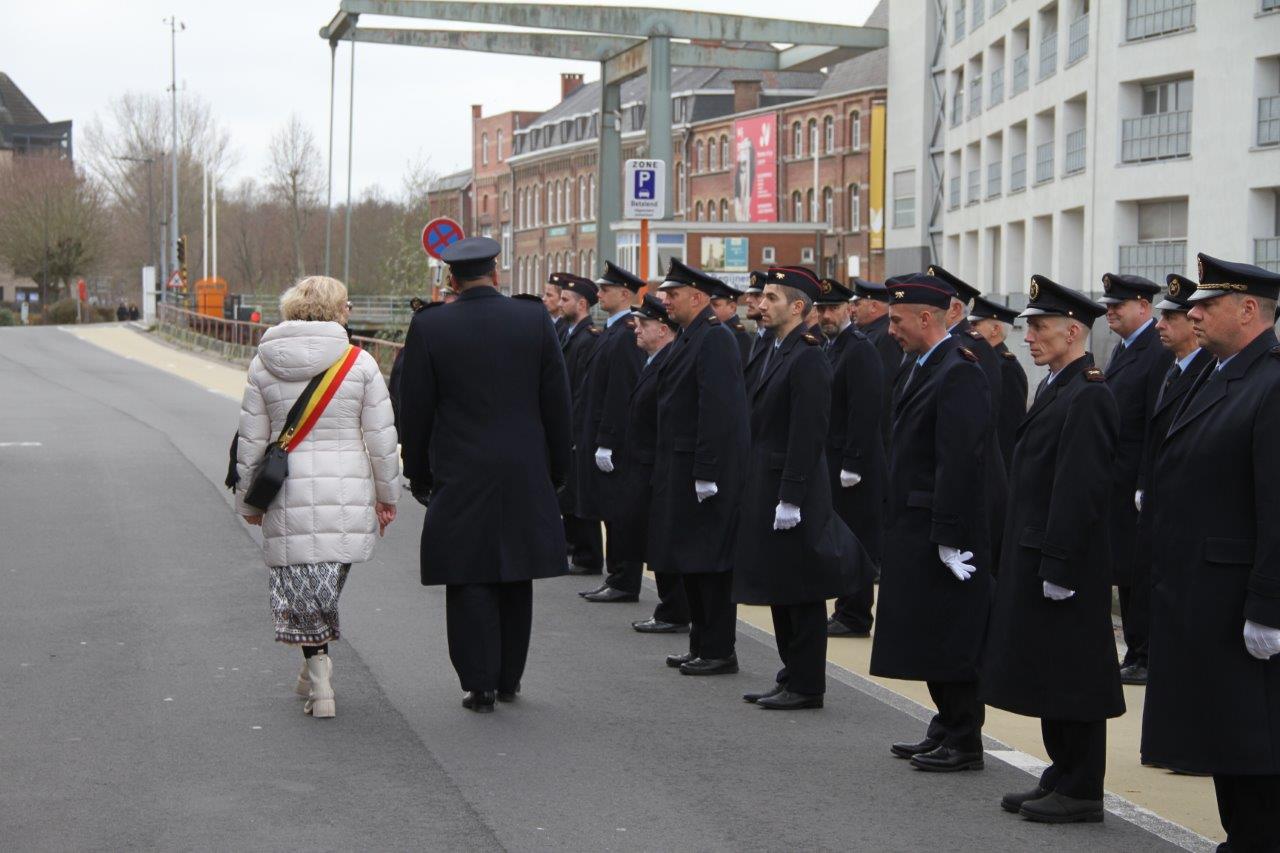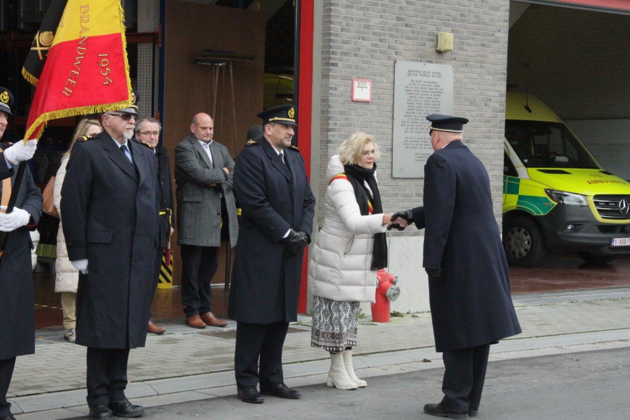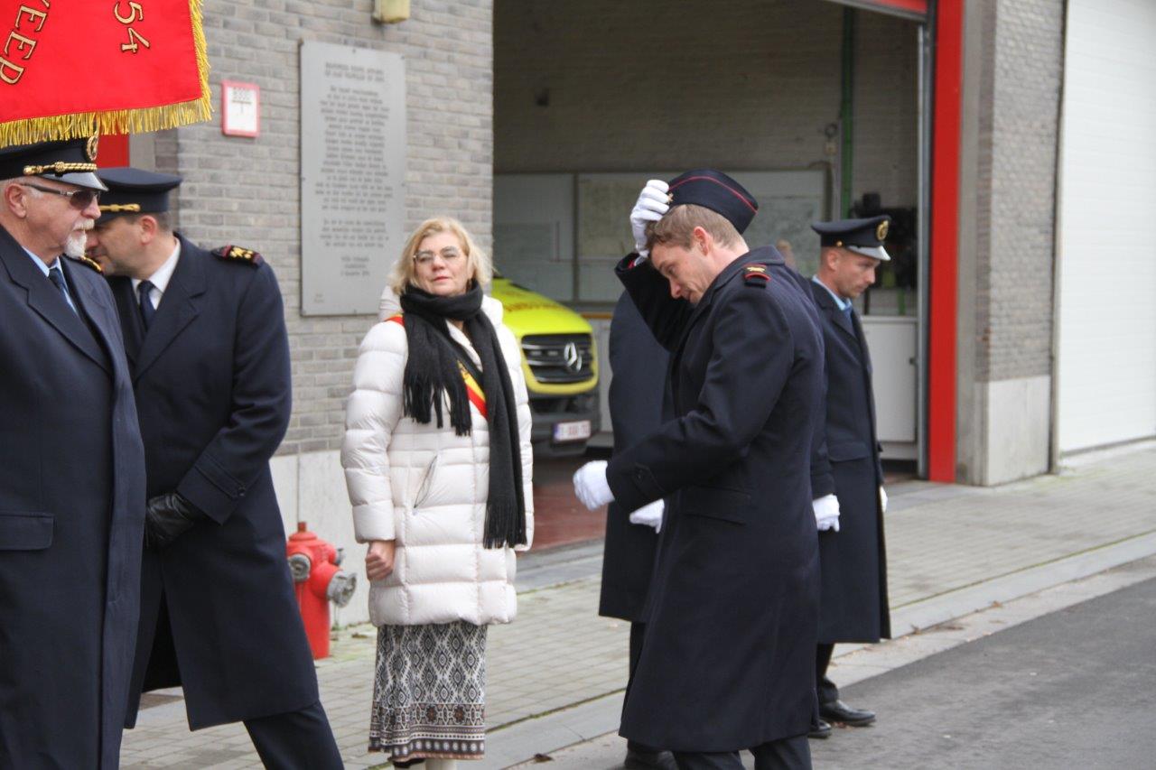 Na de viering schouwde burgemeester Tania De Jonge ter hoogte van de brandweerkazerne de troepen. Zij deed dat in het gezelschap van haar schepenen Marc Torrekens, Alain Triest, Henri Evenepoel, Katie Coppens en Stijn Vermassen.