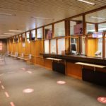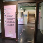 In het centrum kom je eerst voorbij een automatische temperatuurcontrole. Als deze in orde is, kan je doorgaan naar de loketten.