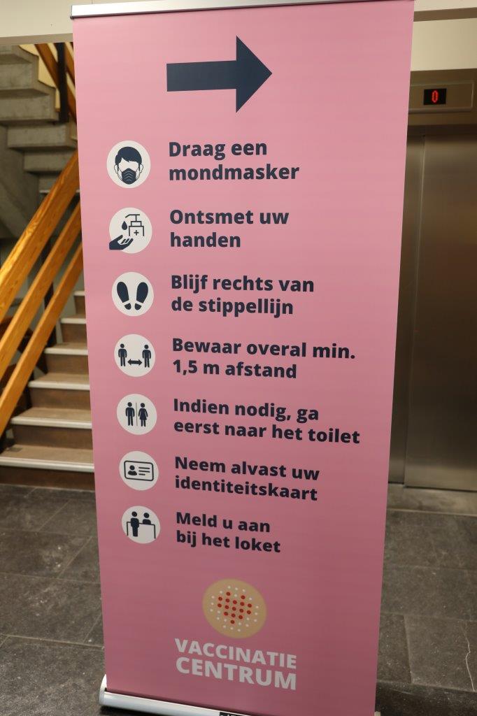 Daar krijg je via een ticketingsysteem een nummer, zodat je in de juiste vaccinatieruimte terecht komt. Na een kort gesprek volgen de prik en 15 minuten wachttijd om na te gaan of je geen bijwerkingen vertoont.