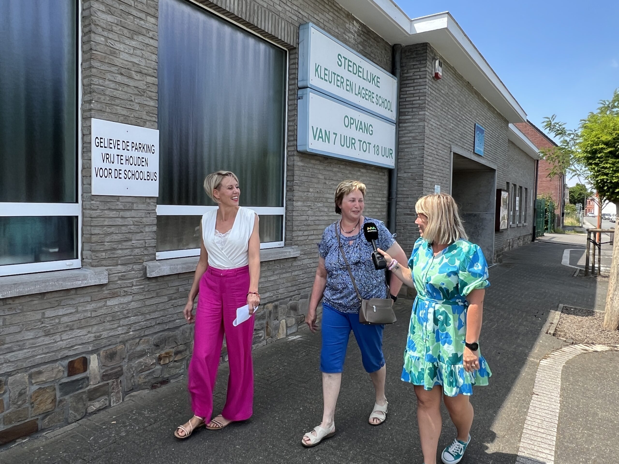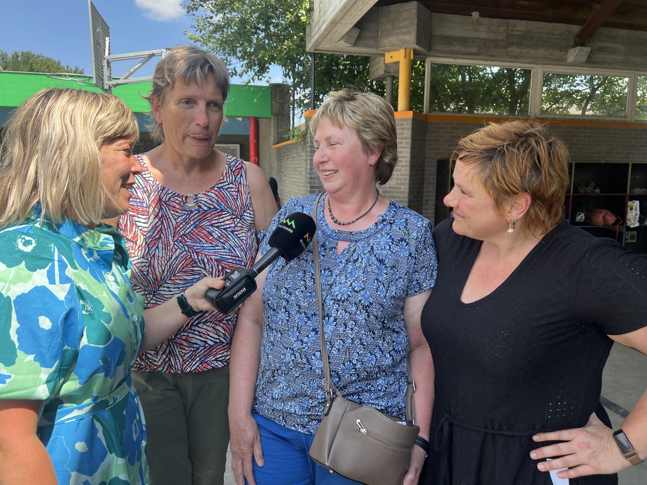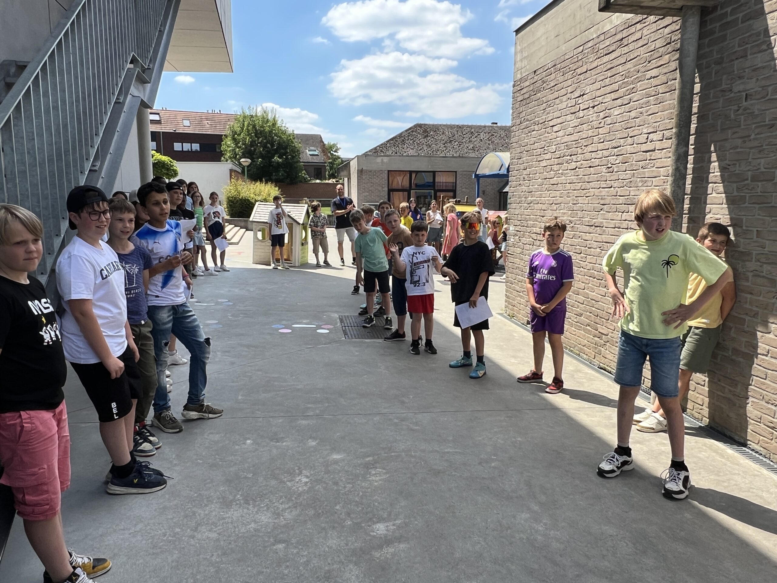 “Juf Myriam stopt na meer dan 40 jaar dienst”, vertelde ons nog directeur Jeroen Cooman. “Logisch, dat we haar in de bloemen zetten. We hebben het voor haar zo mooi mogelijk gemaakt en ik denk, dat ze dit zeker apprecieert. Dat wil tegelijk zeggen, dat het bijna mijn beurt is aangezien juf Myriam evenveel dienstjaren heeft als ik. Maar het is afscheid nemen voor nieuwe dingen, de gang van het leven. Iedereen hier verdient een mooi afscheid omwille van hun inzet voor de school. Ik ben altijd al zeer fier geweest op mijn team, dus ook vandaag. Er komen weinig teams in onze buurt.”