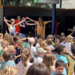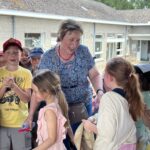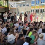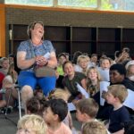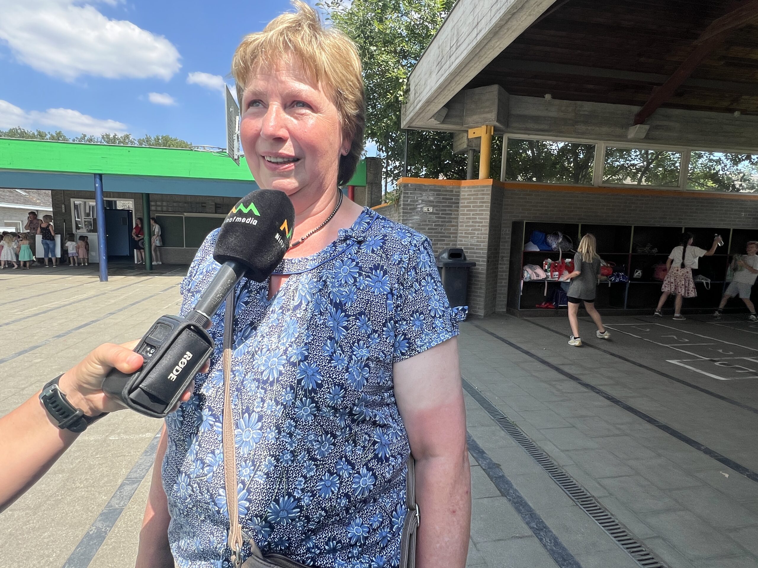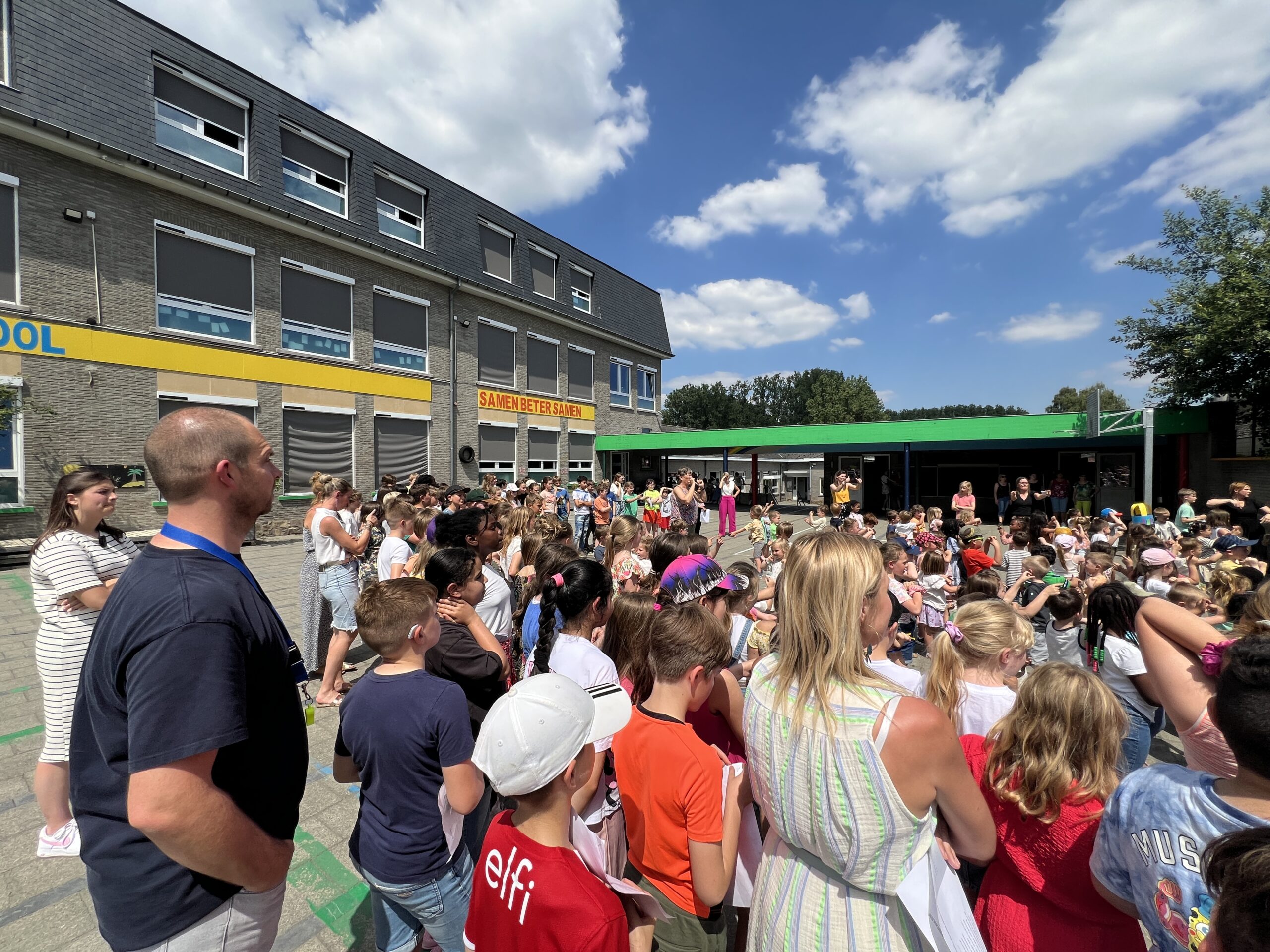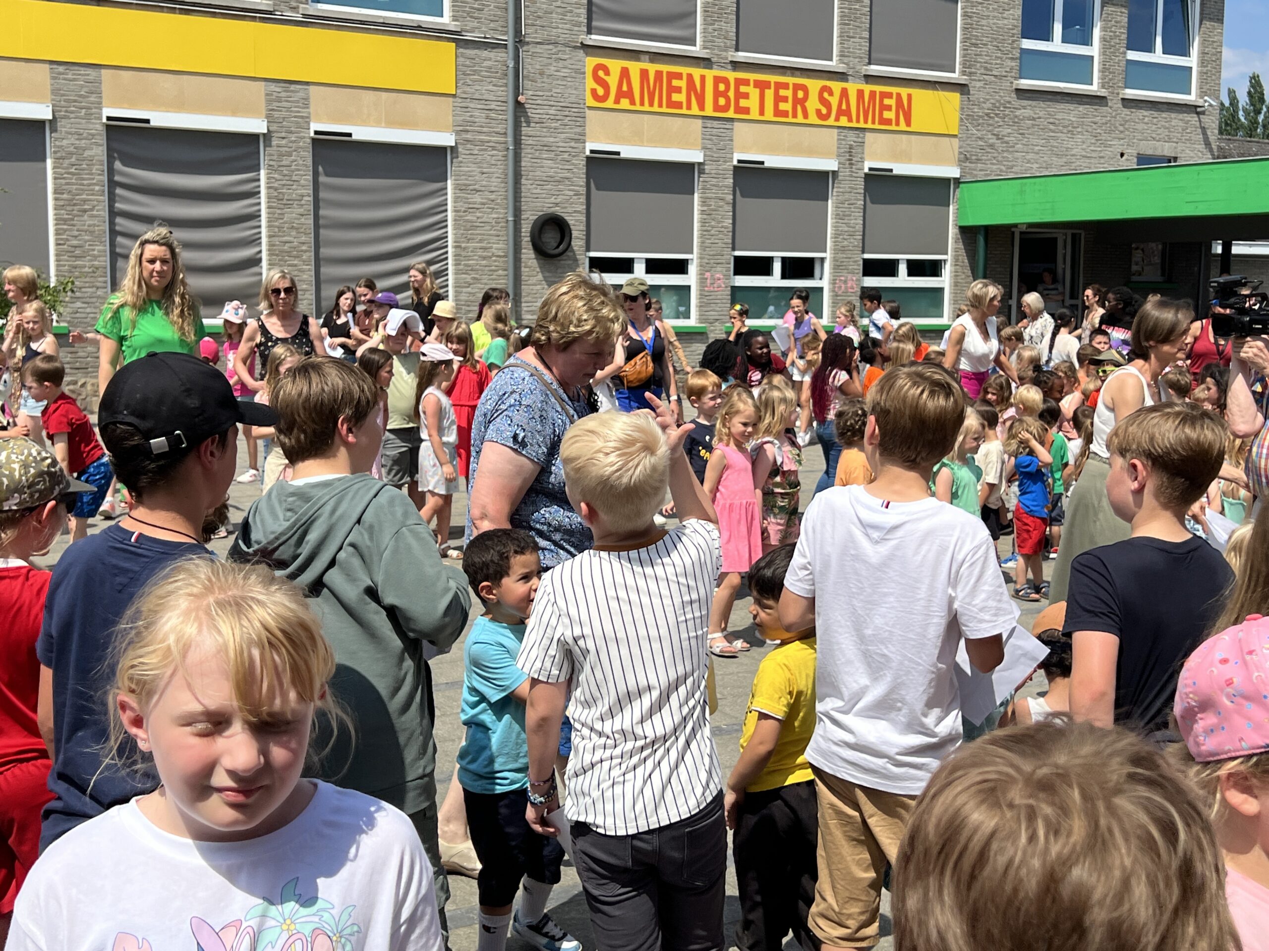 “De meeste onder jullie hebben in mijn klasje hun eerste stapjes gezet naar de grote school”, zegde ze in haar afscheidsspeech aan de leerlingen. “Soms met een traantje, soms ook heel stoer en trots. Ik heb jullie opgevangen, getroost, aangemoedigd en af en toe wat ingetoomd. Ik was heel graag de juf van de instappertjes, de engeltjes en soms ook de bengeltjes. Ik heb van jullie genoten, heb jullie zien groeien en openbloeien en daarvoor wil ik jullie allen bedanken.”