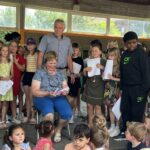 Stiekem hoopt ze, dat enkele kinderen later ook juf of meester zouden worden, zoals er nu een aantal onder de collega’s zijn, die nog in haar klas hebben gezeten. Ze had ook een woord van dank voor de ouders en grootouders: voor het vertrouwen en de goede samenwerking.