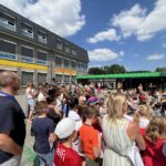 En toe zwaaiden de leerlingen juf Myriam uit.