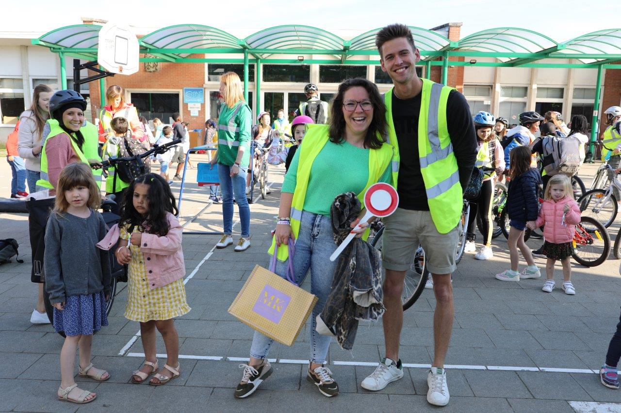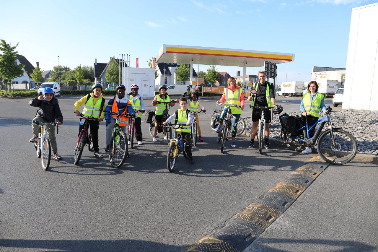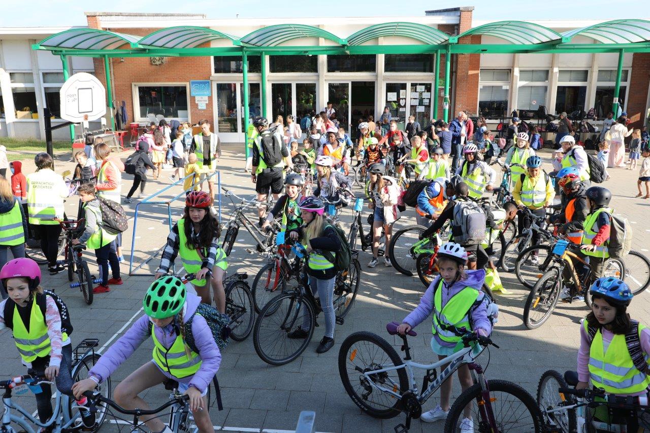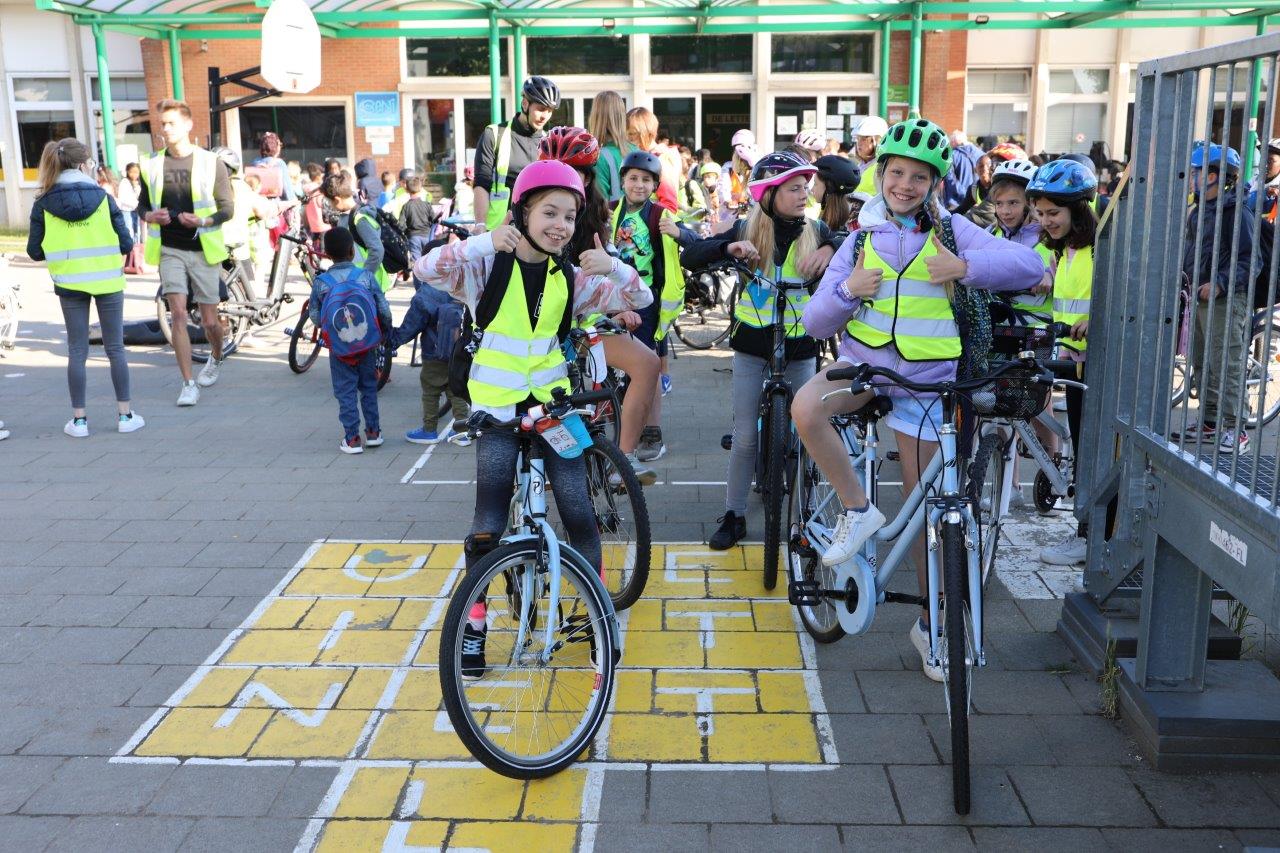 Leerkracht Stephanie D ‘Haeseleer was één van de begeleiders, die met de leerlingen per fiets van start gingen in Meerbeke. “Het was een fijne ervaring, maar je moet attent zijn in het verkeer. Als begeleider beveiligen we de groep en de fietsers bij het oversteken van kruispunten.”