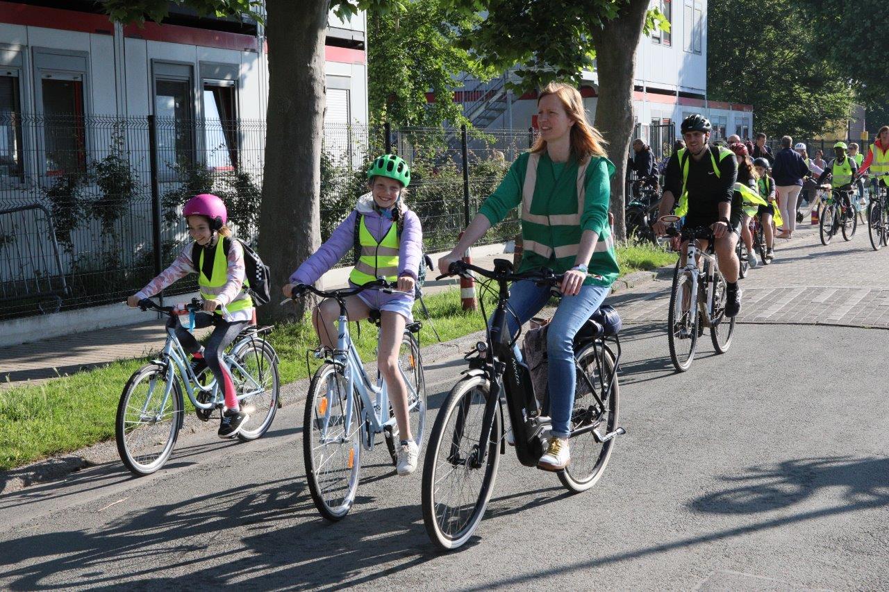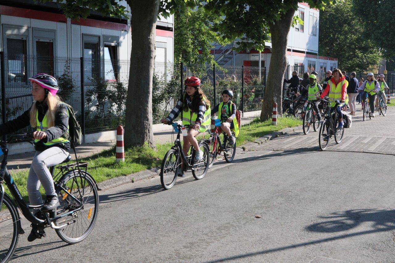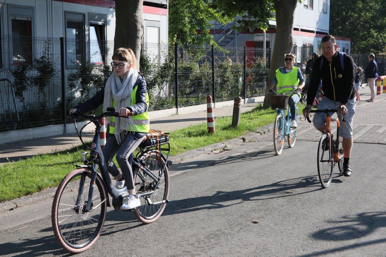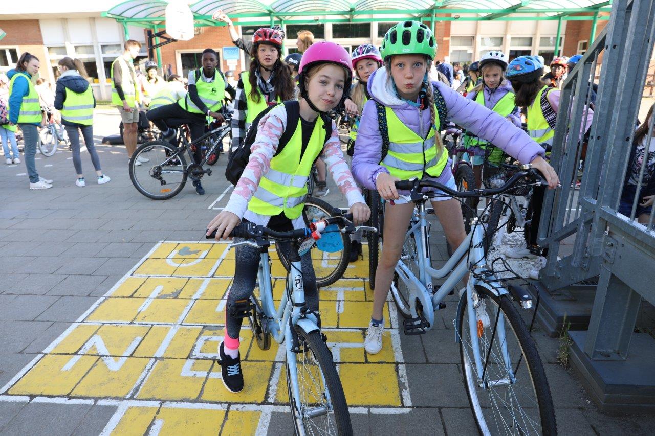 Leerkracht Stephanie D ‘Haeseleer was één van de begeleiders, die met de leerlingen per fiets van start gingen in Meerbeke. “Het was een fijne ervaring, maar je moet attent zijn in het verkeer. Als begeleider beveiligen we de groep en de fietsers bij het oversteken van kruispunten.”