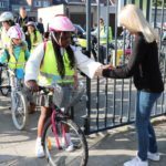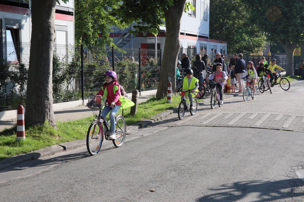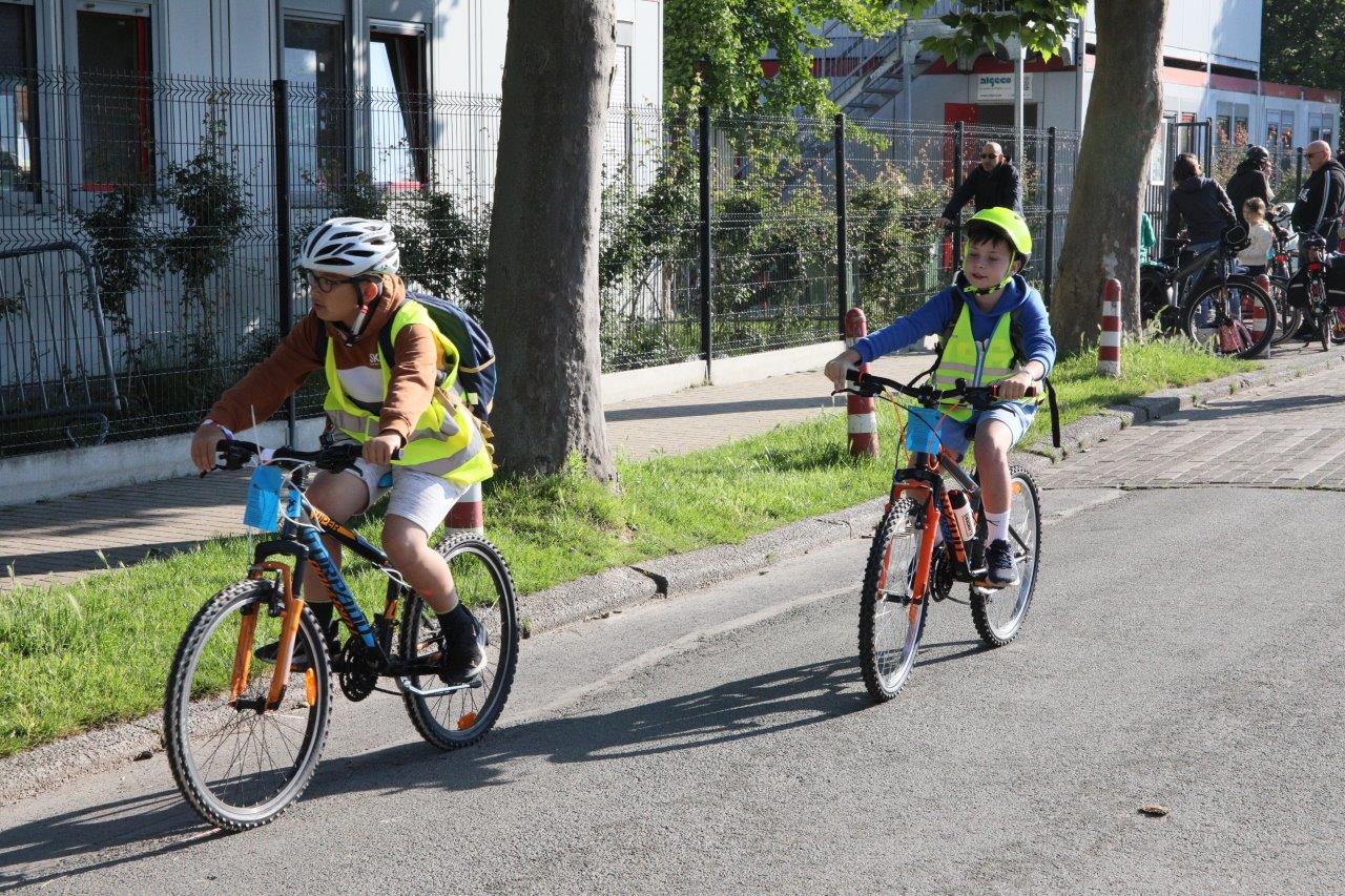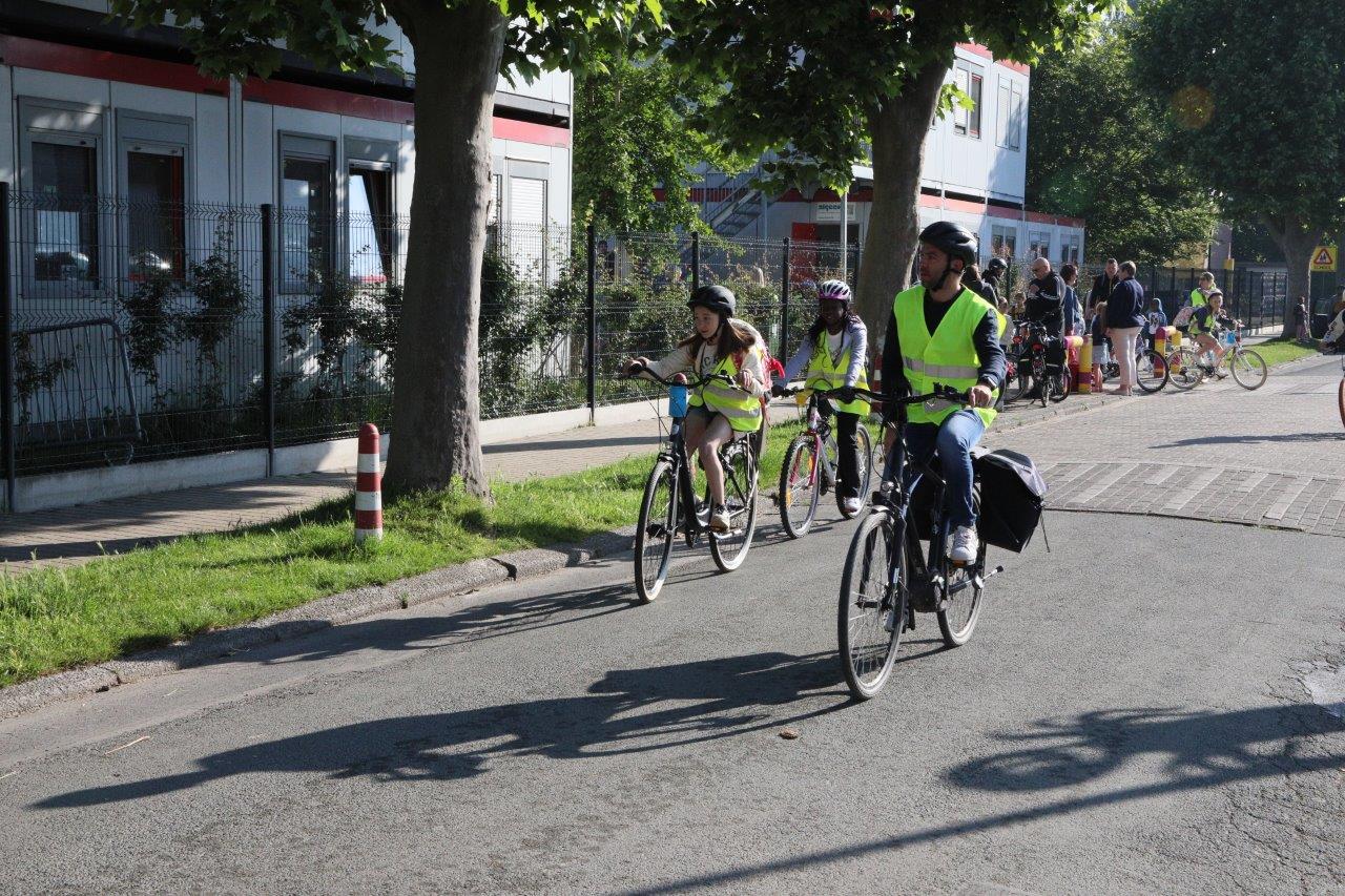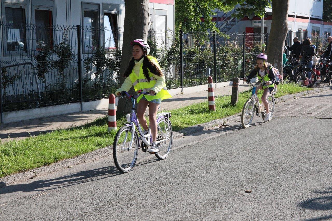 Leerkracht Stephanie D ‘Haeseleer was één van de begeleiders, die met de leerlingen per fiets van start gingen in Meerbeke. “Het was een fijne ervaring, maar je moet attent zijn in het verkeer. Als begeleider beveiligen we de groep en de fietsers bij het oversteken van kruispunten.”