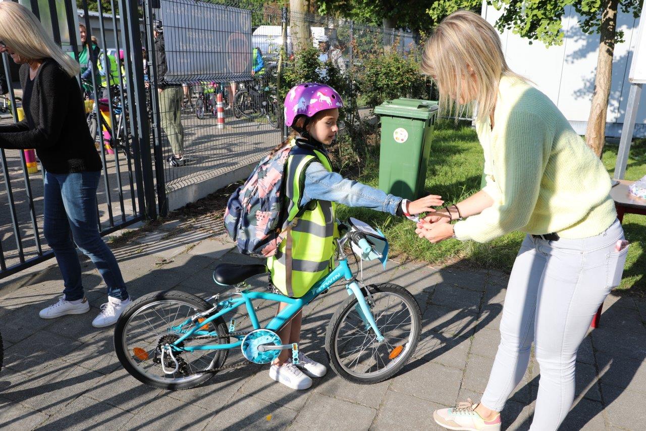 Tijdens de sponsorloop is de Esdoornstraat afgesloten. Daar kunnen de verschillende klassen om beurten fietsvaardigheden uitvoeren met hun juf of meester.