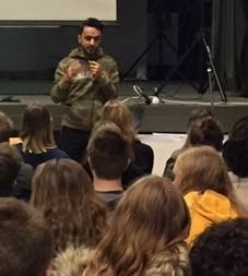 De leerlingen uit het vierde jaar verwelkomden Ayman. Hij is een Jemeniet, die door oorlog en honger enkele maanden geleden naar België is gevlucht. Na zijn pakkende getuigenis speelden de leerlingen een taalganzenbord waarin weetjes en opdrachten over talen aan bod kwamen.