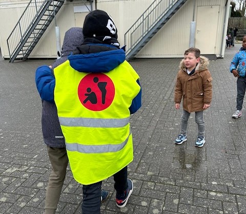 Binnen het jaarthema ‘De Hazelaar kiest kleur’ stond de afgelopen periode het deelthema ‘Geel, elke ruzie is te veel’ in de kijker. Het doel: zorgen voor extra aanspreekpunten op de speelplaats, die de kinderen helpen wanneer het even misloopt.