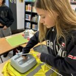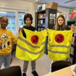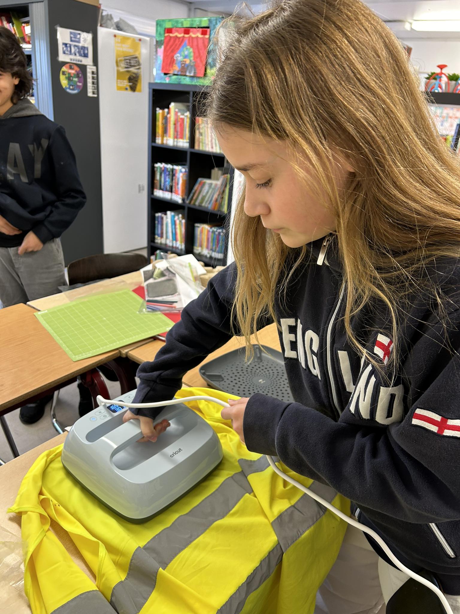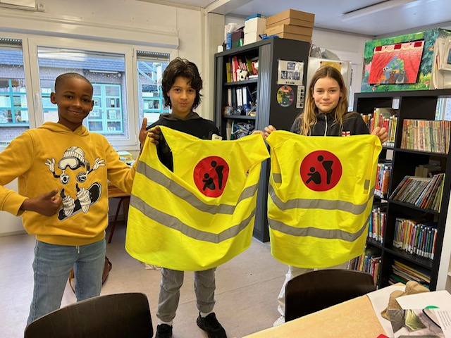 De pestpolitie is intussen in alle klassen voorgesteld. Op de speelplaats vallen ze extra op door hun fluohesjes, waarop het logo van de pestpolitie is aangebracht. Enkele leerlingen van de leerlingenraad gingen daarvoor samen met juf Sarah van de Boomhutklas aan de slag met de Cricut, de hobby- en snijmachine van de school. Meteen ook een lesje techniek erbij.