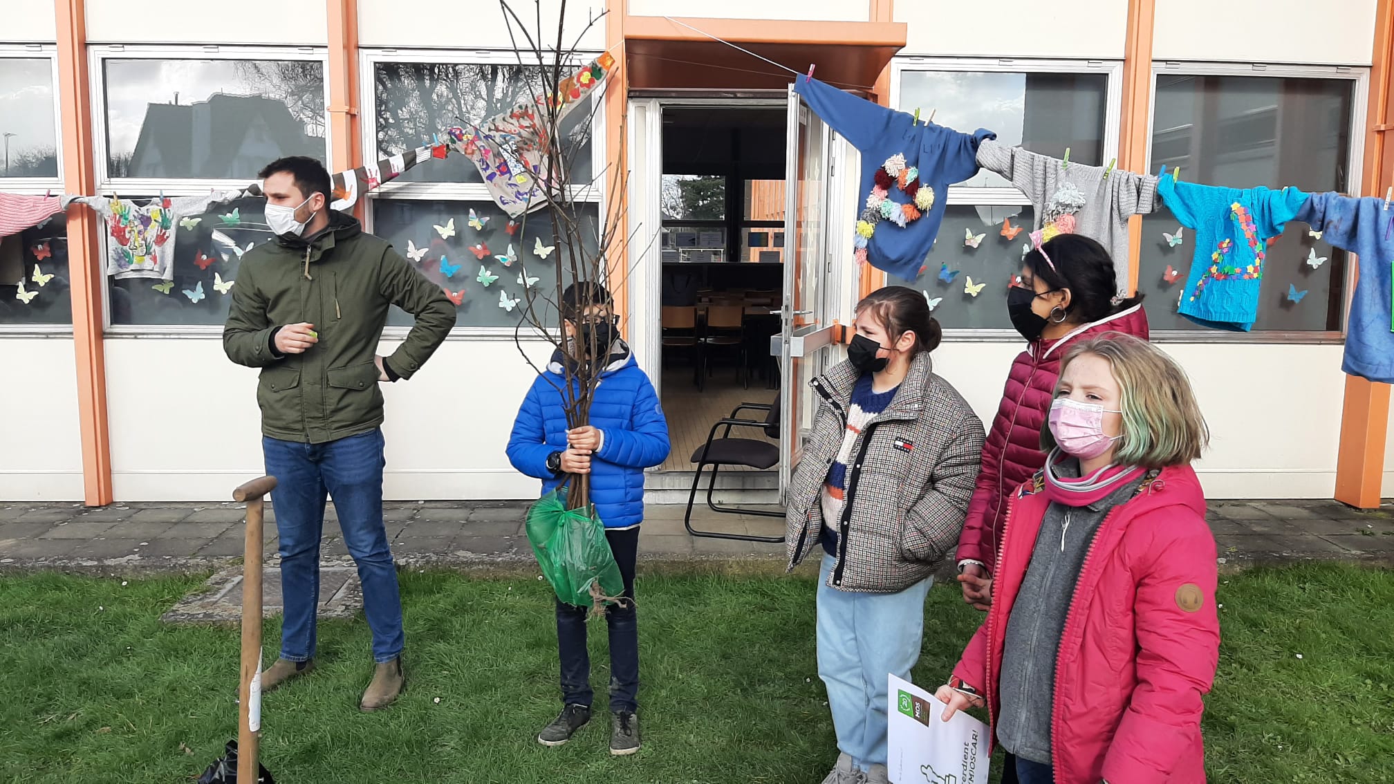 De leerlingen voegden daarna de daad bij het woorden en plantten nieuwe boompjes als concrete actie voor het milieu.