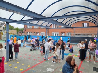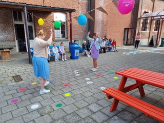 MEERBEKE – De 400 leerlingen zijn maandag 1 september kleurrijk verwelkomd op de beide vestigingen van de school, in de Nieuwstraat en de Donkerstraat. Samen met hun ouders ontdekten de leerlingen speelplaatsen vol kleur.