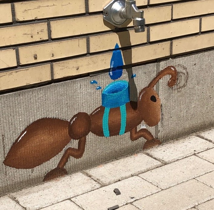 Eigenlijk is dit slotproject een gevolg van de gedwongen sluiting van de school. “De leerlingen ontdekten diverse musea via de virtuele rondleidingen. En dan waren er natuurlijk de graffiti van Myra in het Ninoofse straatbeeld. Het respecteren van een veilige afstand en de mogelijkheid om buiten te werken in plaats van in de klas, heeft er ook toe bijgedragen om deze werken te verspreiden binnen de school.”