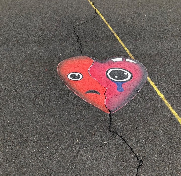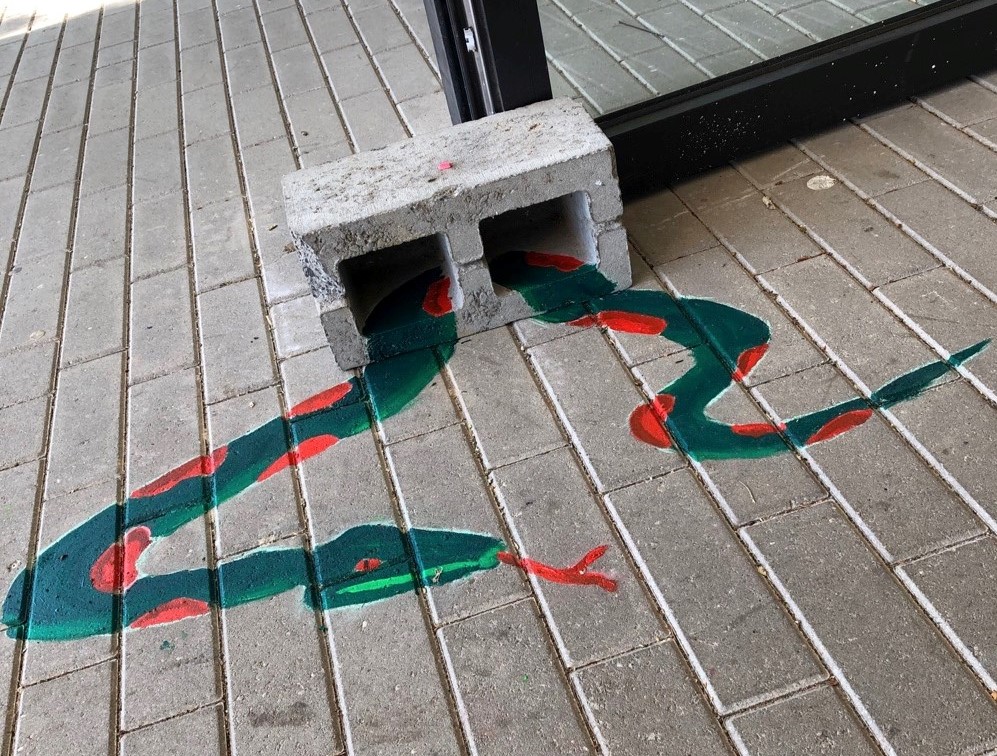 Leerkracht Claude Dendauw had zijn leerlingen tijdens de gedwongen sluiting van de school al creatief uitgedaagd om thuis elke dag een tekening te maken. Als laatste opdracht mochten de laatstejaars VBK de schoolomgeving onder handen nemen.