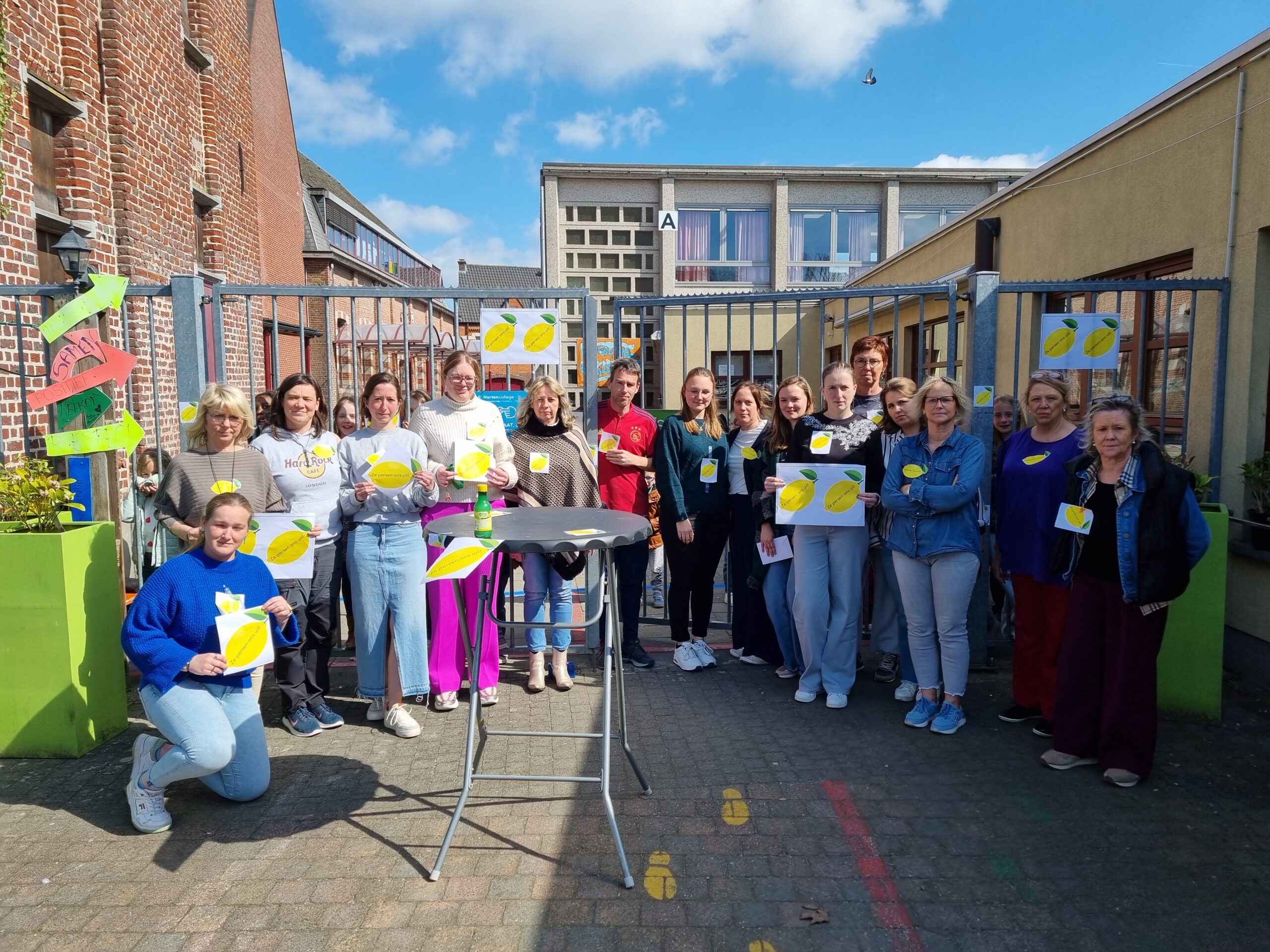 Om dit in de kijker te plaatsen, organiseerde de school een ludieke actie in het thema van ‘uitgeperste citroenen’.