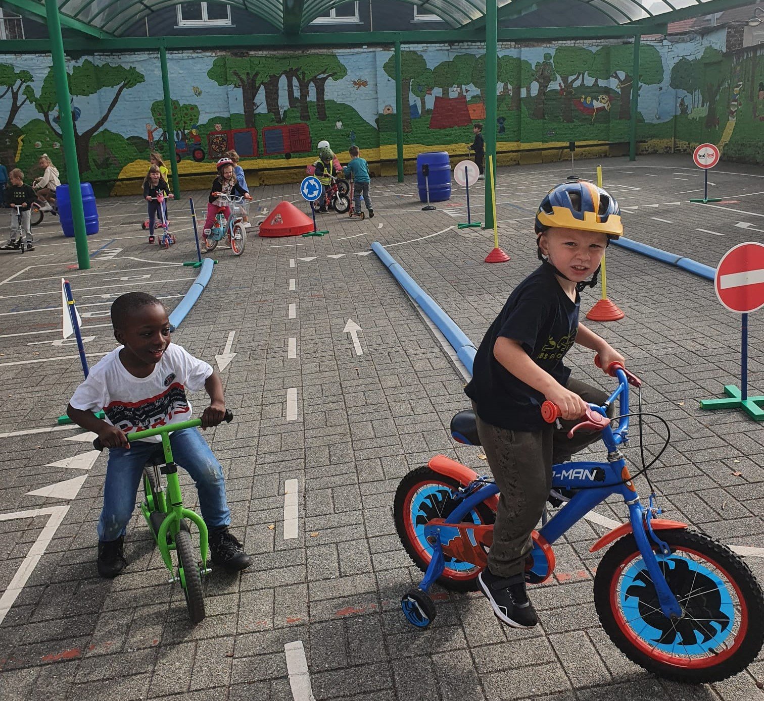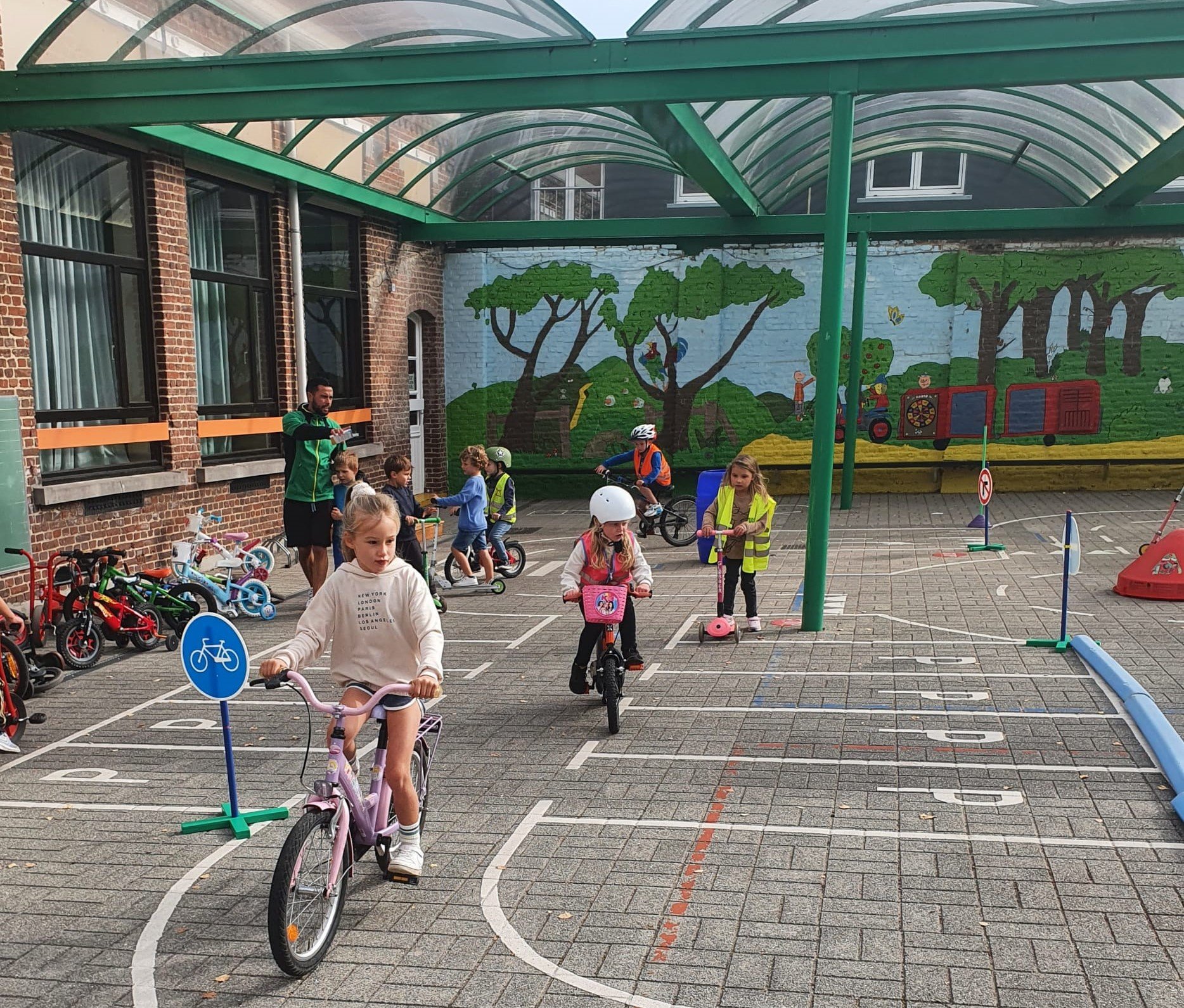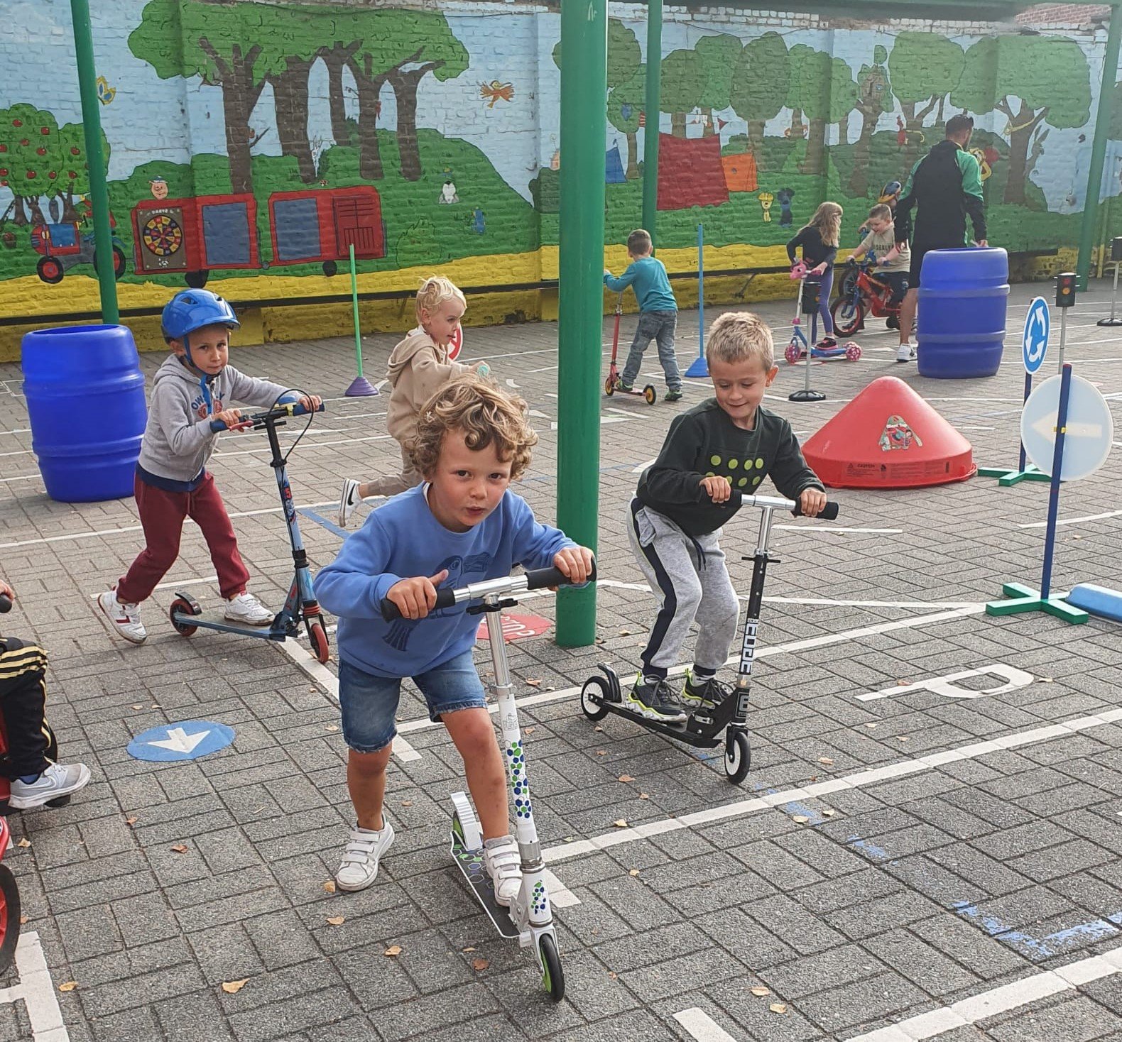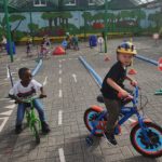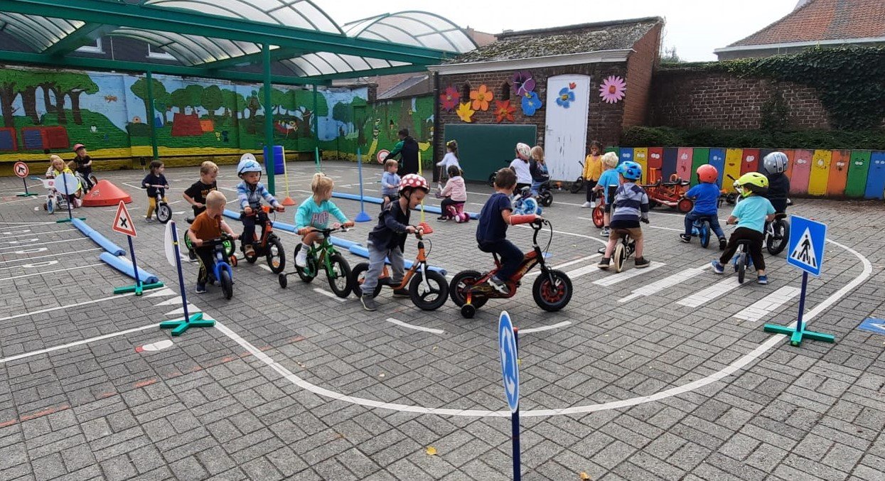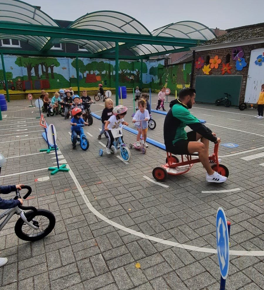 De juffen toverden de kleuters om tot veilige strappers. Doorheen de dag konden ze op de speelplaats een fietsparcours afleggen. Als beloning kregen ze een fietsbrevet.