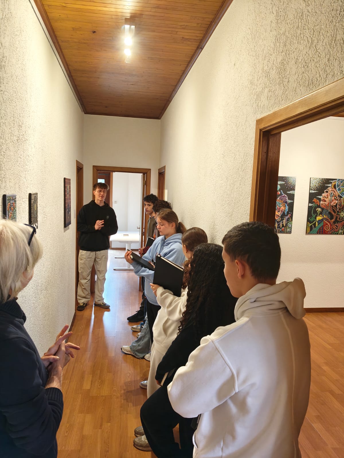 Dendauw is zelf kunstenaar én mentor van jong talent. Hij gidste de leerlingen doorheen de tentoonstelling en benadrukte het belang van kunst voor de stad en haar jeugd.