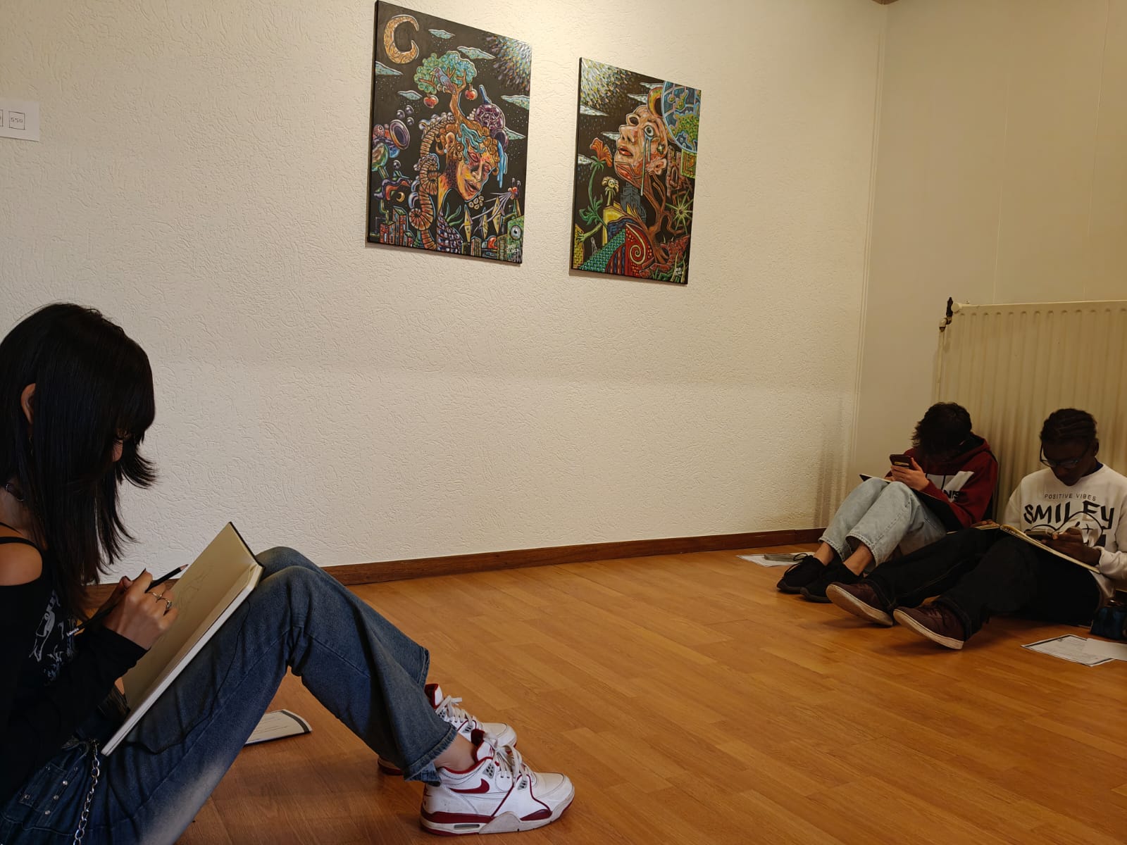 Na de rondleiding gingen de leerlingen zelf creatief aan de slag: ze maakten schetsen, geïnspireerd door Slincx’ aanpak en gebruikten daarbij een kijkwijzer om hun blik op kunst verder te verdiepen.