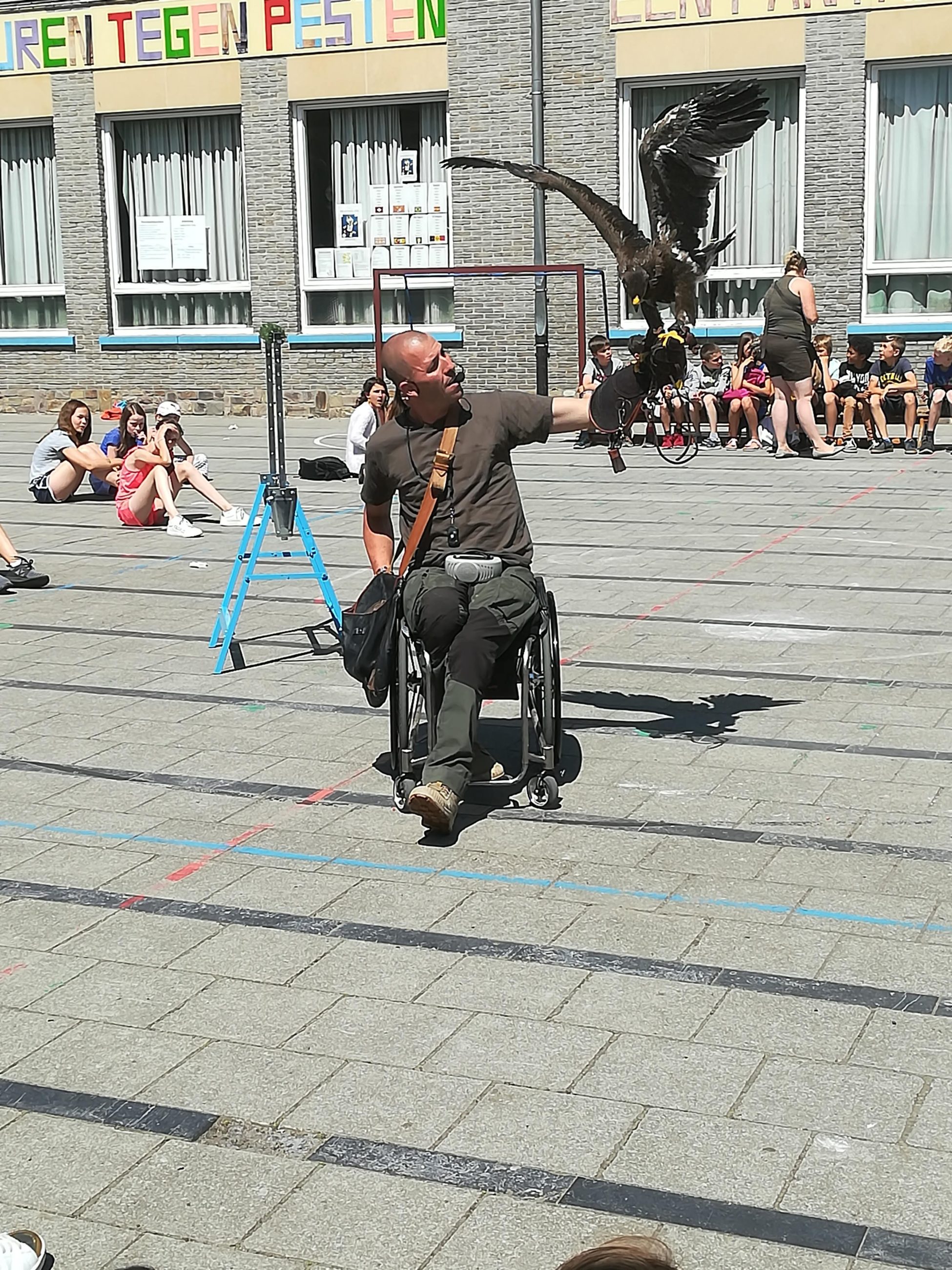 Leerkrachten en leerlingen sloten het driejarig thema ‘Te land, ter zee en in de lucht’ in schoonheid af. Het ‘in de lucht’ konden ze letter opnemen, want de afsluiter was een spectaculaire show met roofvogels. Hiervoor konden ze rekenen op valkerij ‘Flying Dreams’.