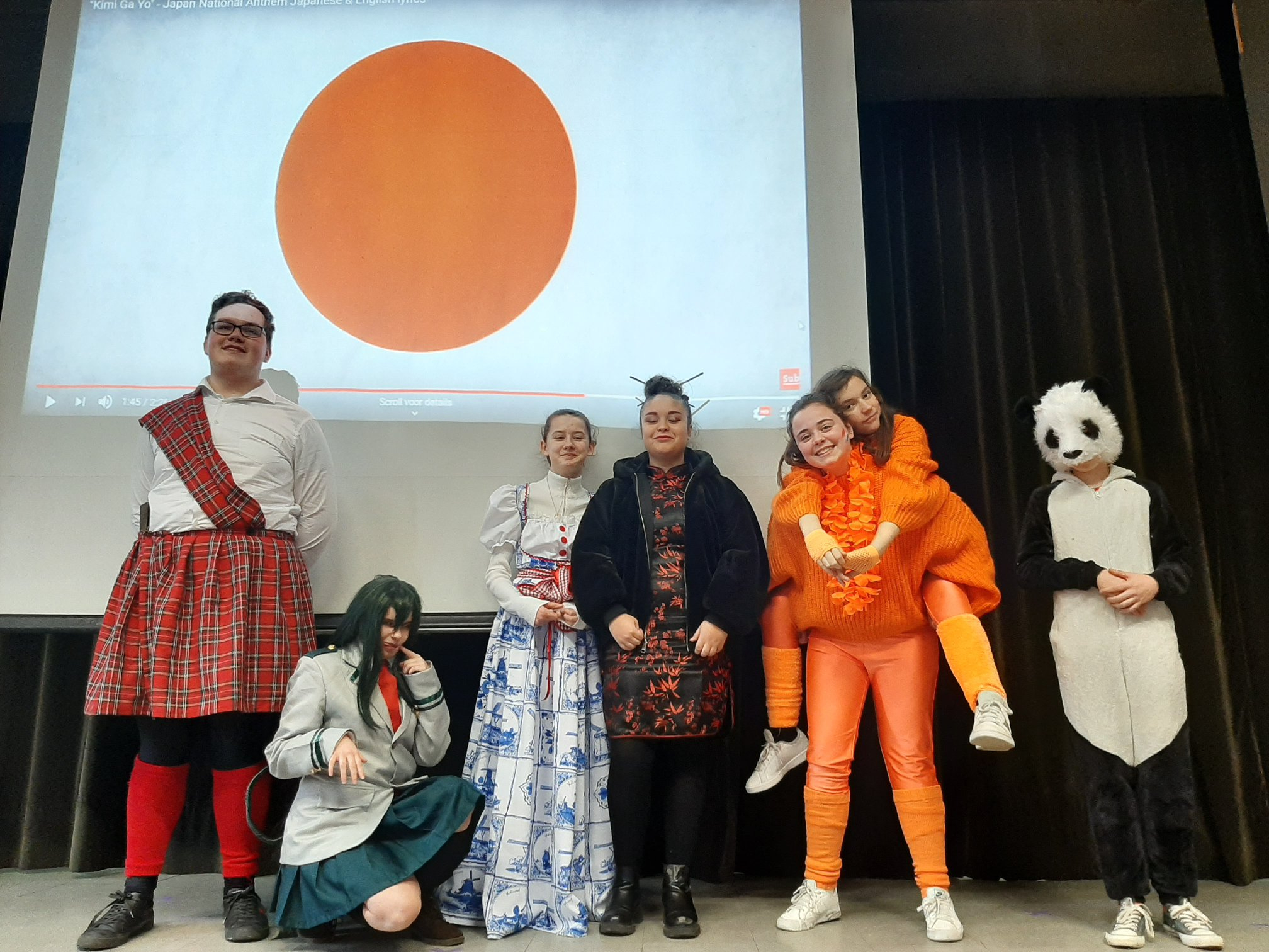 De leerlingenraad had een wedstrijd uitgeschreven om die dag verkleed naar school te komen. De kledij moest wel een band hebben met een taal of een land.