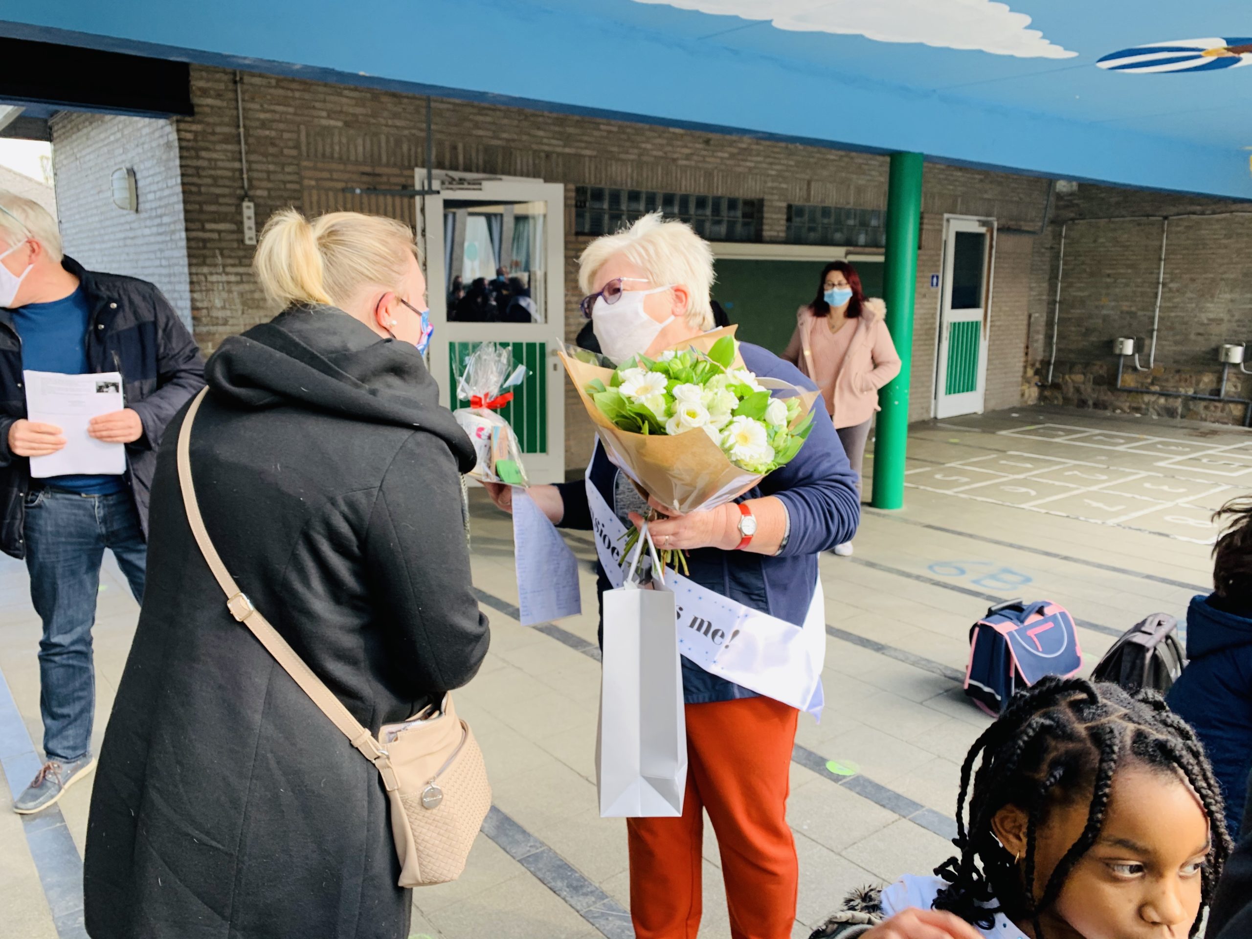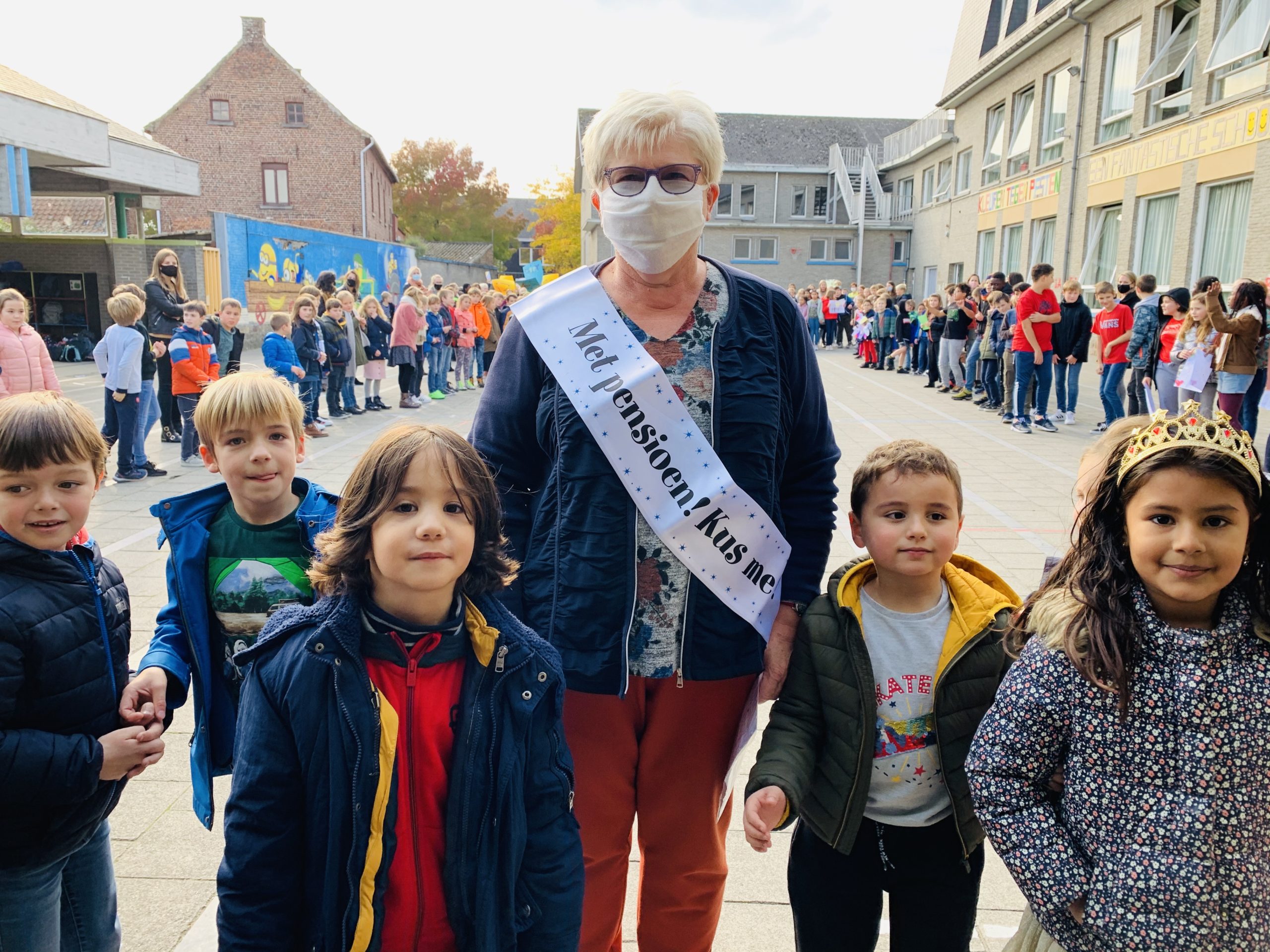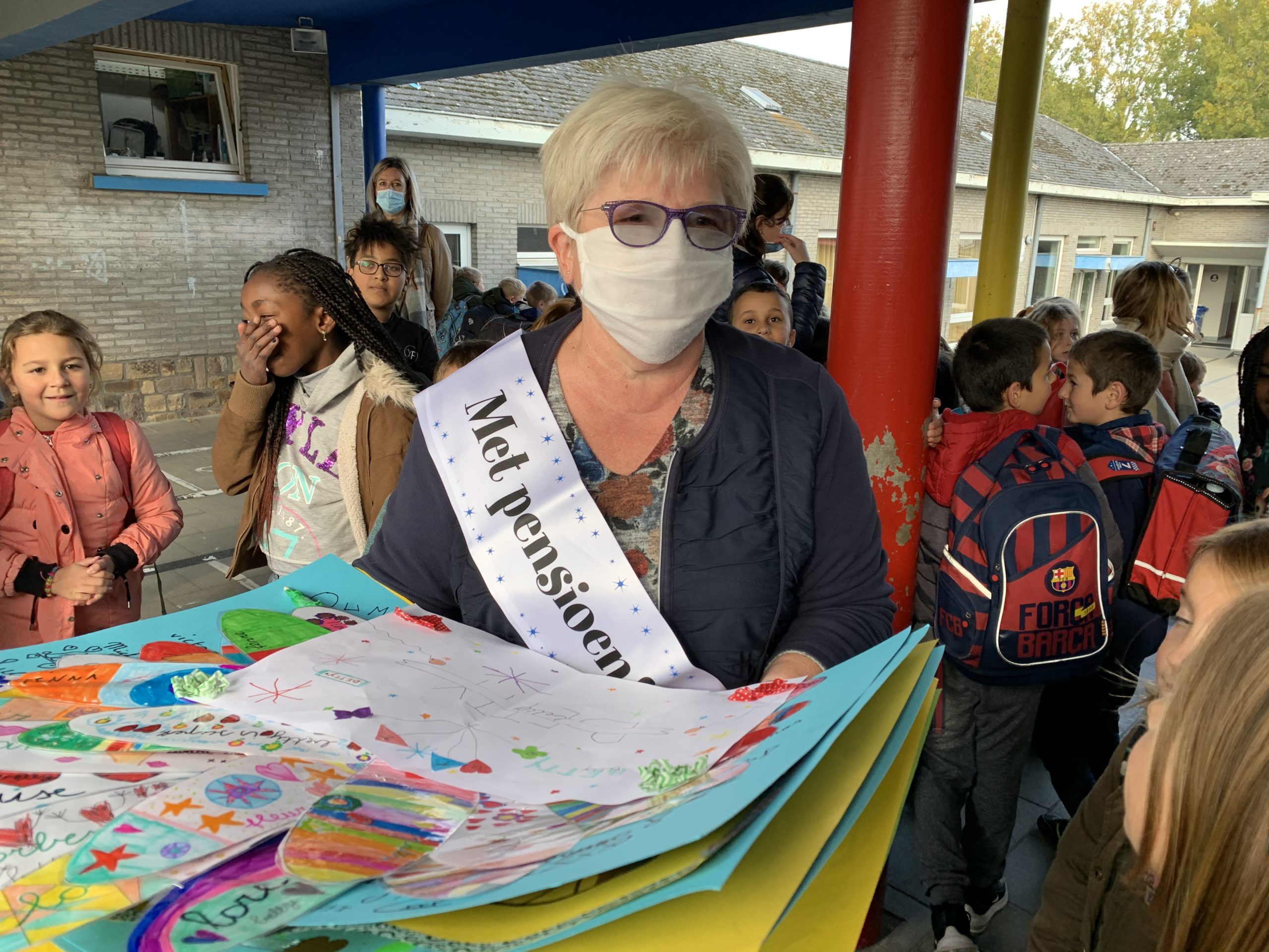 DENDERWINDEKE – Betty Leuckx was aangenaam verrast door het afscheid, dat leerkrachten en leerlingen van de stedelijke basisschool Windekind maandag 19 oktober voor haar in petto hadden. Het was haar laatste schooldag.