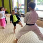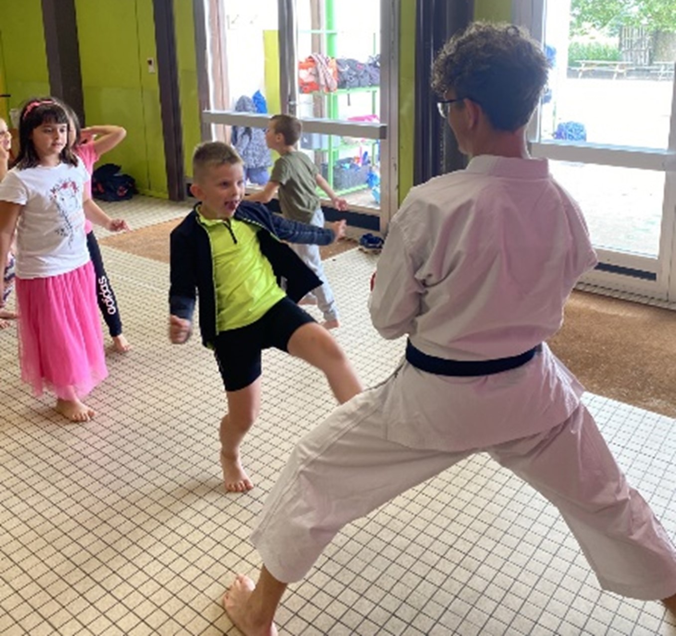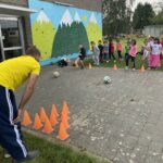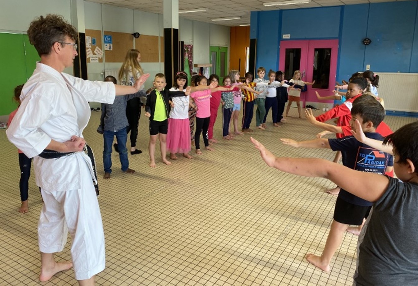 De kinderen van het 1ste en het 2de leerjaar leerden vaardig omgaan met de bal tijdens de voetbalinitiatie. Zij oefenden hun bewegingen te beheersen tijdens de les karate.