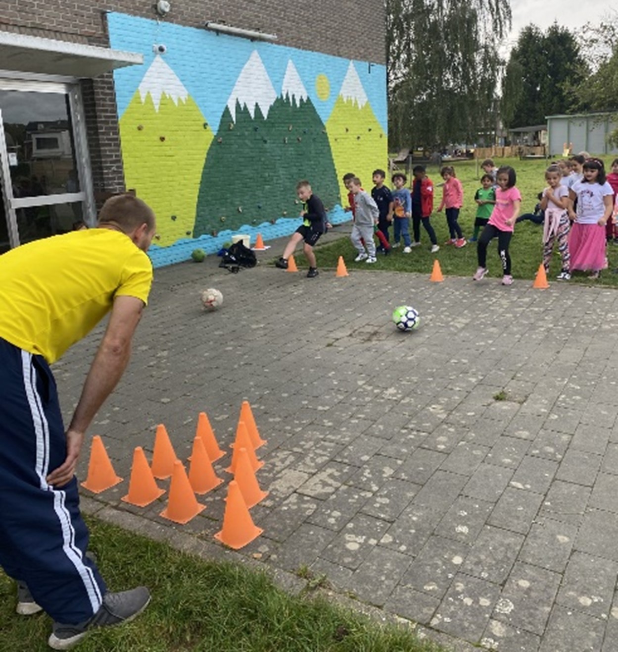 De kinderen maakten eerst kennis met de coaches en luisterden naar de uitleg in verband met hun sportclub. Daarna ging elke klas mee met haar coach voor een aantal initiatieoefeningen.