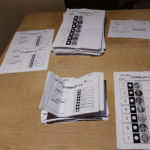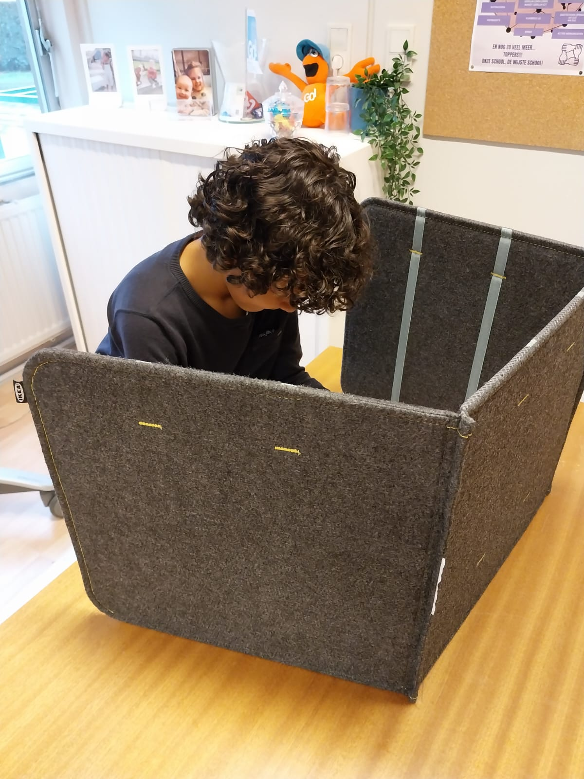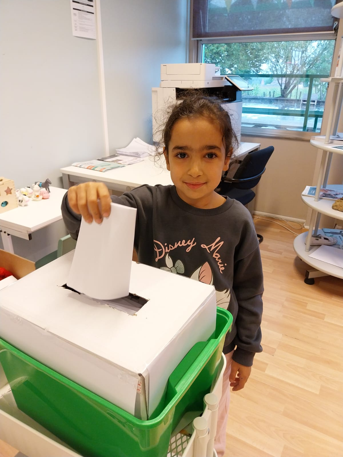 De dag na de echte gemeenteraadsverkiezingen van 13 oktober toverde het leerkrachtenteam het bureau van directie Tommy Devuyst om tot een heus stembureau met 6 stemhokjes.