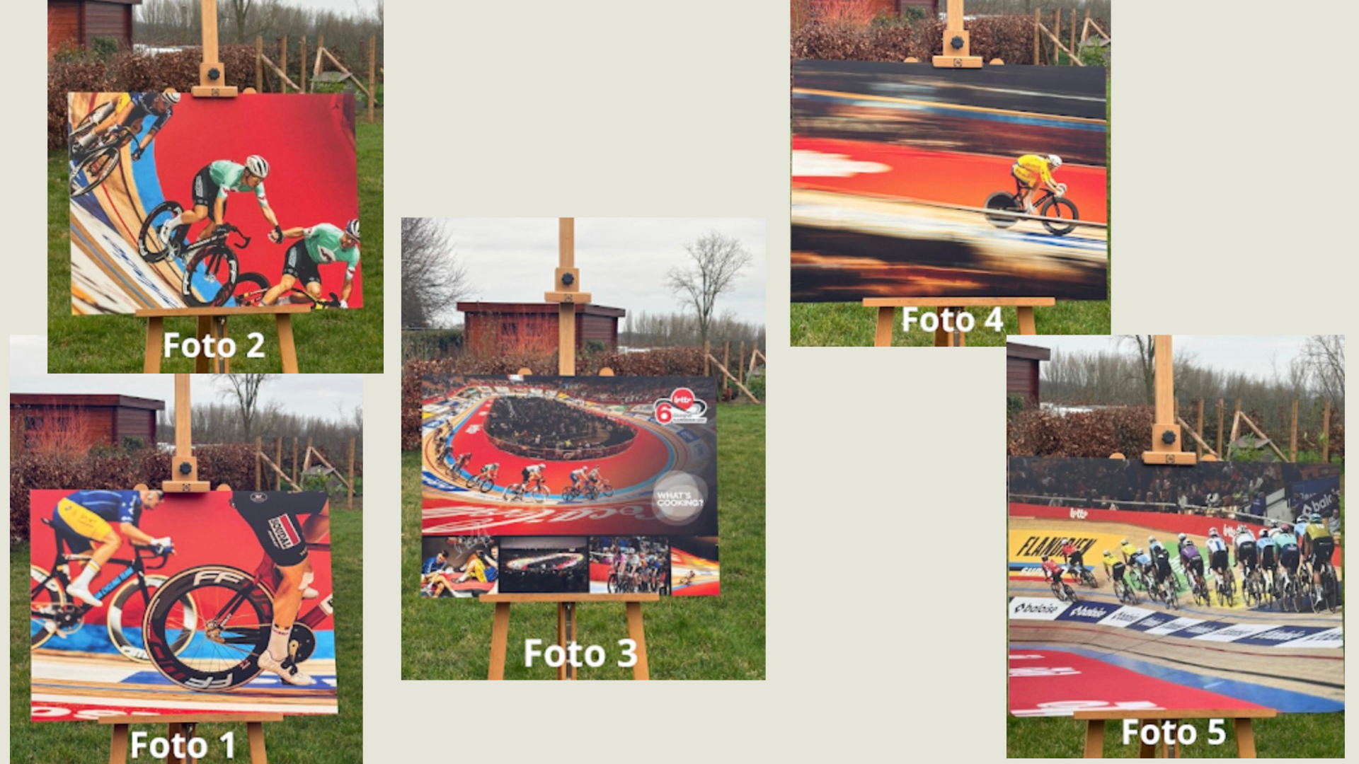 De veilingstukken bestaan uit grote, kwalitatieve foto’s op forex materiaal (80 x 60 cm) die de sfeer van de Zesdaagse van Gent perfect vatten. Deze unieke exemplaren zijn geschonken door het bedrijf Delibarn – What’s Cooking?.